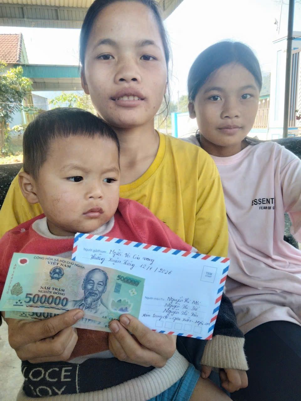 Con xin cập nhật hình ảnh trao cưu mang tháng 12/2025, tháng 1/2026 ạ. Con xin chân thành cảm ơn chị Loan Nguyễn, gđ c Mộc Di rất nhiều ạ!. Em cảm ơn anh @ducanh078 đã quan tâm, nhắc nhở ạ!. Hiện tại một bé thứ 2 đã lấy chồng về Quỳ Hợp(Nghệ An). Còn chị đầu nay cũng gửi con đi học ở nhà trường, và đi làm thuê thêm trang trải cuộc sống và nuôi em thứ 3 ăn học ạ. Các cháu vẫn còn rất khó khăn!. Mong cả nhà tiếp tục giúp đỡ các cháu ạ!