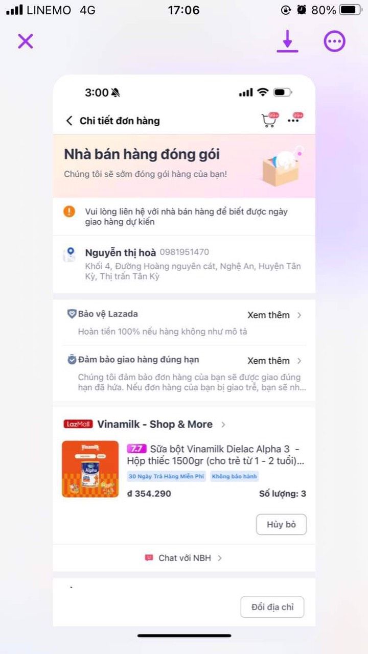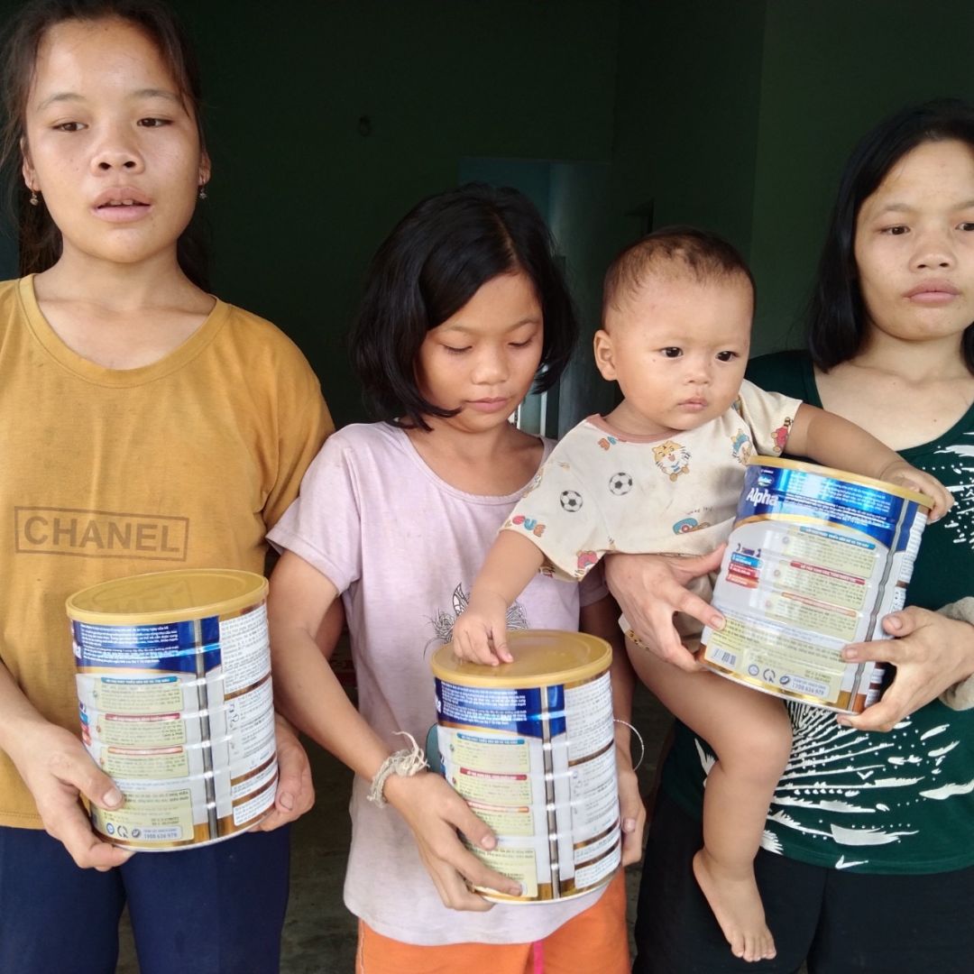 Ngoài ra một MTQ có gửi tặng em bé nhỏ 3 hộp sữa, cửa hàng ở gần đấy sẽ giao qua luôn, nhờ Ngân báo với cô giáo nhận trao cho con giùm nhé.