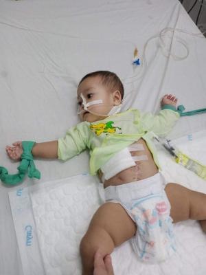 Hiện tại cháu Băng đã trải qua 4 lần phẫu thuật cắt 1 đoạn ruột bị tắc bẩm sinh và cắt toàn bộ đại tràng không hoạt động được. Hiện nay tình trạng bé vẫn chưa được ổn định và phải ra vào bệnh viện thường xuyên, ba bé làm thuê phụ hồ, từ khi con ốm đau thì bữa đi làm bữa không, mẹ ở nhà chăm con ốm, và đứa chị 4 tuổi và ba mẹ chồng già yếu. Gia đình đang rất khó khăn.