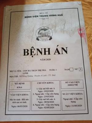 Bé Hồ Khánh Băng, 10 tháng tuổi, là người dân tộc thiểu số Pa Cô, sống ở thôn Pi Ây1, xã Quảng Nhâm,  huyện A Lưới đã trải qua 4 lần phẫu thuật cắt 1 đoạn ruột bị tắc bẩm sinh và cắt toàn bộ đại tràng không hoạt động được. Hiện nay tình trạng bé vẫn chưa được ổn định và phải ra vào bệnh viện thường xuyên, ba bé làm thuê phụ hồ, từ khi con ốm đau thì bữa đi làm bữa không, mẹ ở nhà chăm con ốm, và đứa chị 4 tuổi và ba mẹ chồng già yếu. Gia đình đang rất khó khăn, kính mong các mạnh thường quân giúp đỡ cho hoàn cảnh này ạ. Em xin cám ơn.