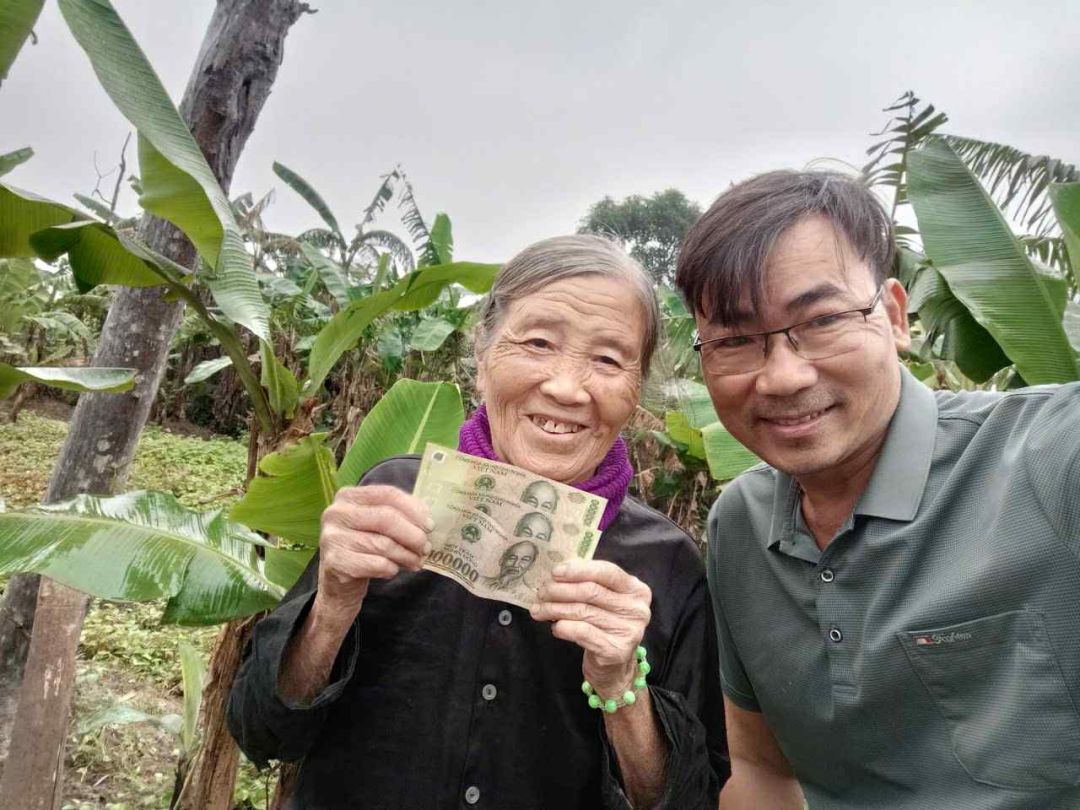 Con xin cập nhật hình ảnh trao cưu mang tháng 10, tháng 11 cho cháu Danh ạ. Vì tháng 10 con trao muộn nên con trao luôn cho bà 2 tháng 1 lúc luôn ạ. Vì tài khoản của con không có báo nên con ko để ý, với đợt này con đi dạy cũng khá bận nên con cũng ko vào xem nên ko biết. Mong anh và bác thông cảm ạ!. Bà mới đi lễ về đang mặc áo đẹp thì về nhận được tiền cưu mang nên bà vui lắm ạ. Bà gửi lời cảm ơn tới a toan.nguyenk và cả nhà ạ!