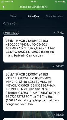 Trungkienbeo đã nhận số tiền 900.000đ trao quà CMTX 3 tháng tới hoàn cảnh bà Ninh bắt đầu từ tháng 3/2021 ạ.