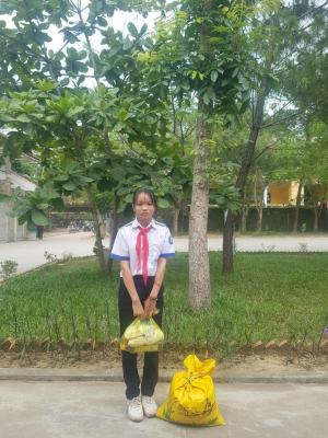 Hôm nay em đã đi trao phần quà CMTX tháng 5/2021 đến hộ bé Kiều Oanh rồi ạ.