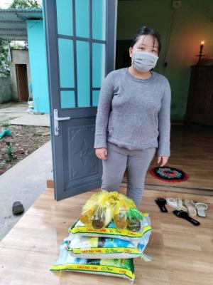 Hôm nay em đã đi trao phần quà CMTX tháng 6/2021 đến hộ em Kiều Oanh rồi ạ.