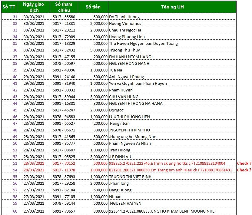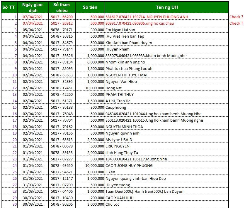 @Thocon : Em chuyển tới Hiền Linh 100,000,000đ để các bạn khu vực Hà Nội thực hiện chương trình dùm nhé.