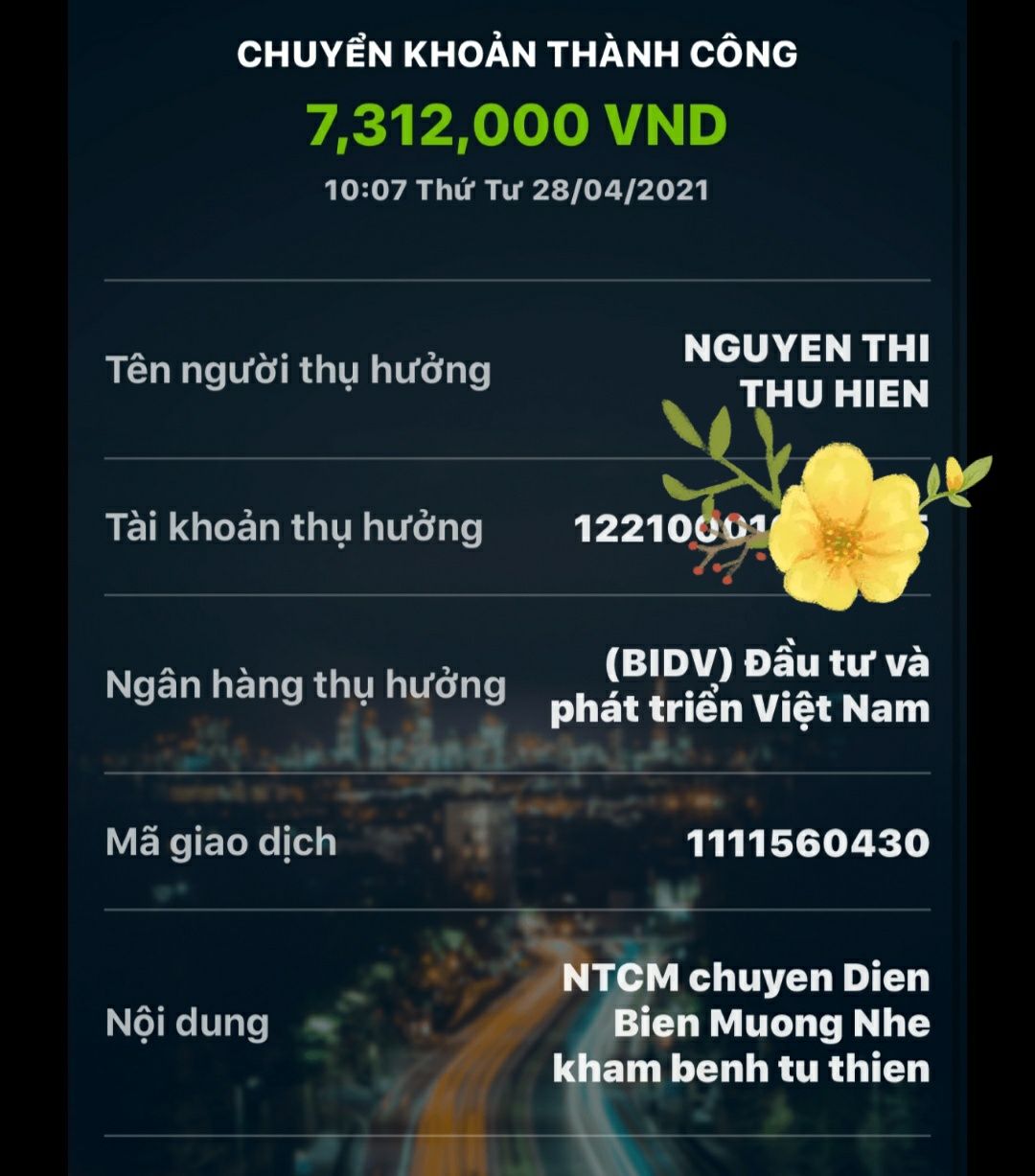 Thocon đã chuyển tiền tới Hiền Linh rồi các bạn nhé.