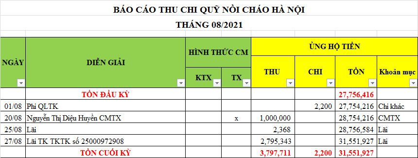 Tác giả Chủ đề: Nồi cháo Hà Nội - Thống kê cưu mang, Báo cáo thu chi năm 2021  (Đã xem 2561 lần)