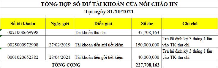 Tổng tồn quỹ cháo tại ngày 30/06/2021 là 216.037.307đ. Cụ thể: