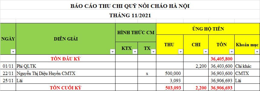 Toàn bộ các chỉ tiêu thu, chi đều tăng so với cùng kỳ năm ngoái, do tăng số buổi nấu cháo từ 4 buổi (năm 2020) lên 22 buổi (năm 2021).