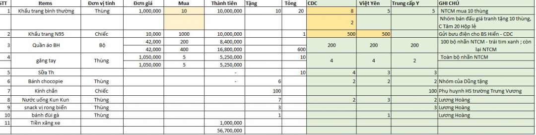 3. Thực phẩm khô: bánh, sữa nước cho cán bộ YT = 3.000.000 đ