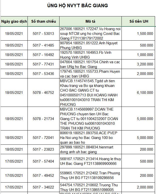 Em đợi sao kê của thủ quỹ diễn đàn , sẽ đề xuất các khoản tiếp tục hỗ trợ cho Băc Giang nếu ngân sách cho phép ạ