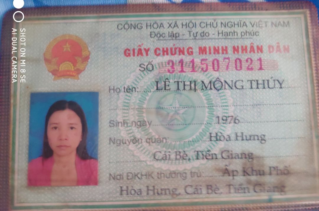 Vậy có chồng có hai người con trai đứa lớn 9 tuổi đứa nhỏ. chồng  chạy xe ôm vợ bán vé số. Bản gốc chứng minh nhân dân của vợ chồng chị .do vay tiền nóng nên đã cầm.