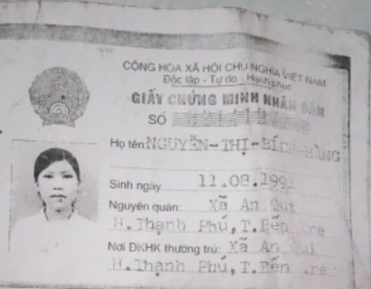 Giấy chứng minh nhân dân của chị vợ đã bị mất đang làm lại chỉ có giấy chứng minh của chồng hình ảnh của người vợ.
