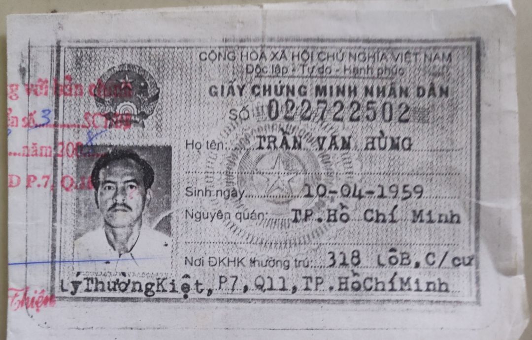 Vợ bị mất giấy chứng minh nhân dân đang chờ làm lại.