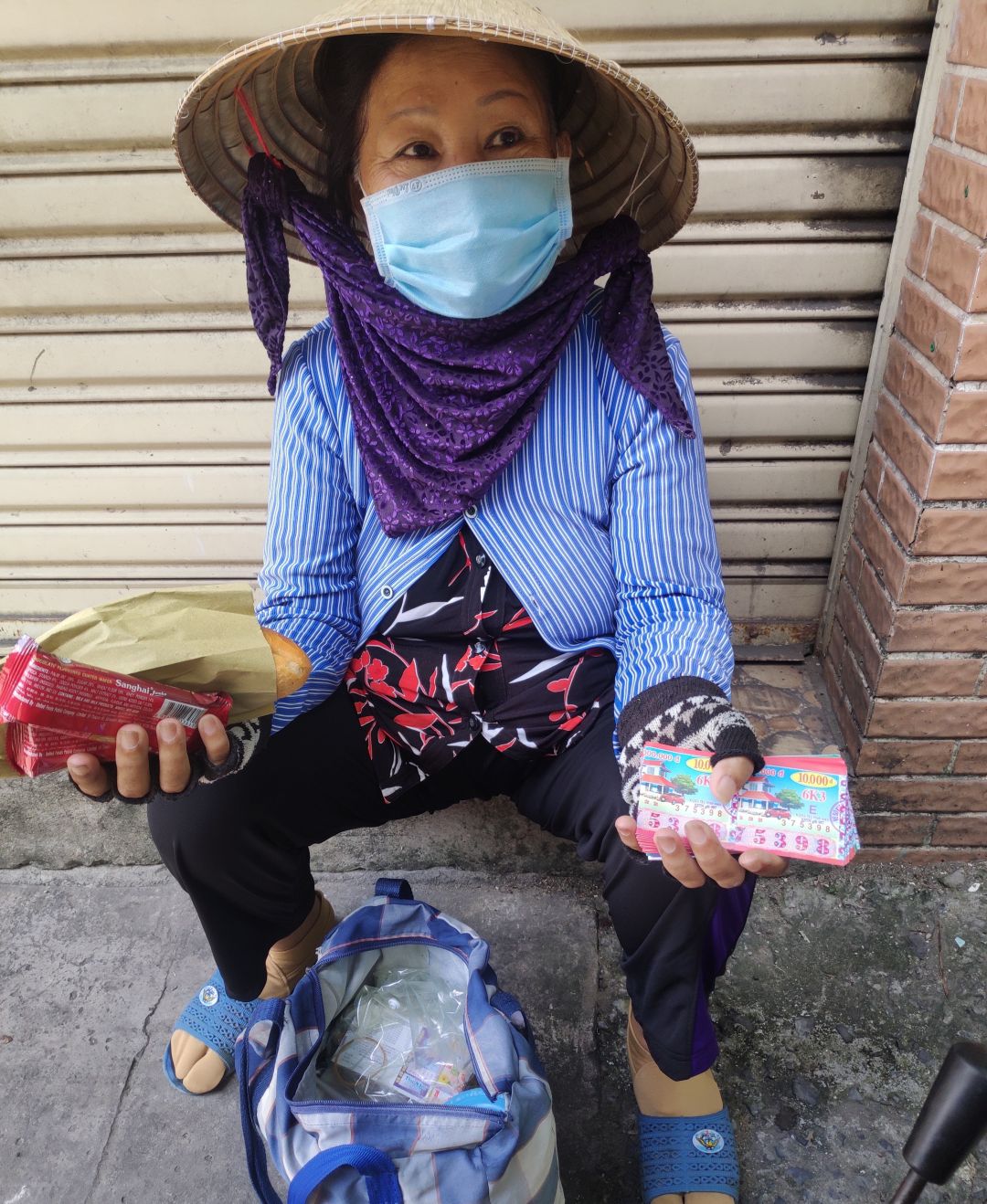 Nên Em tự mưu sinh bằng nghề đi bán vé số tự lo cho bản thân.