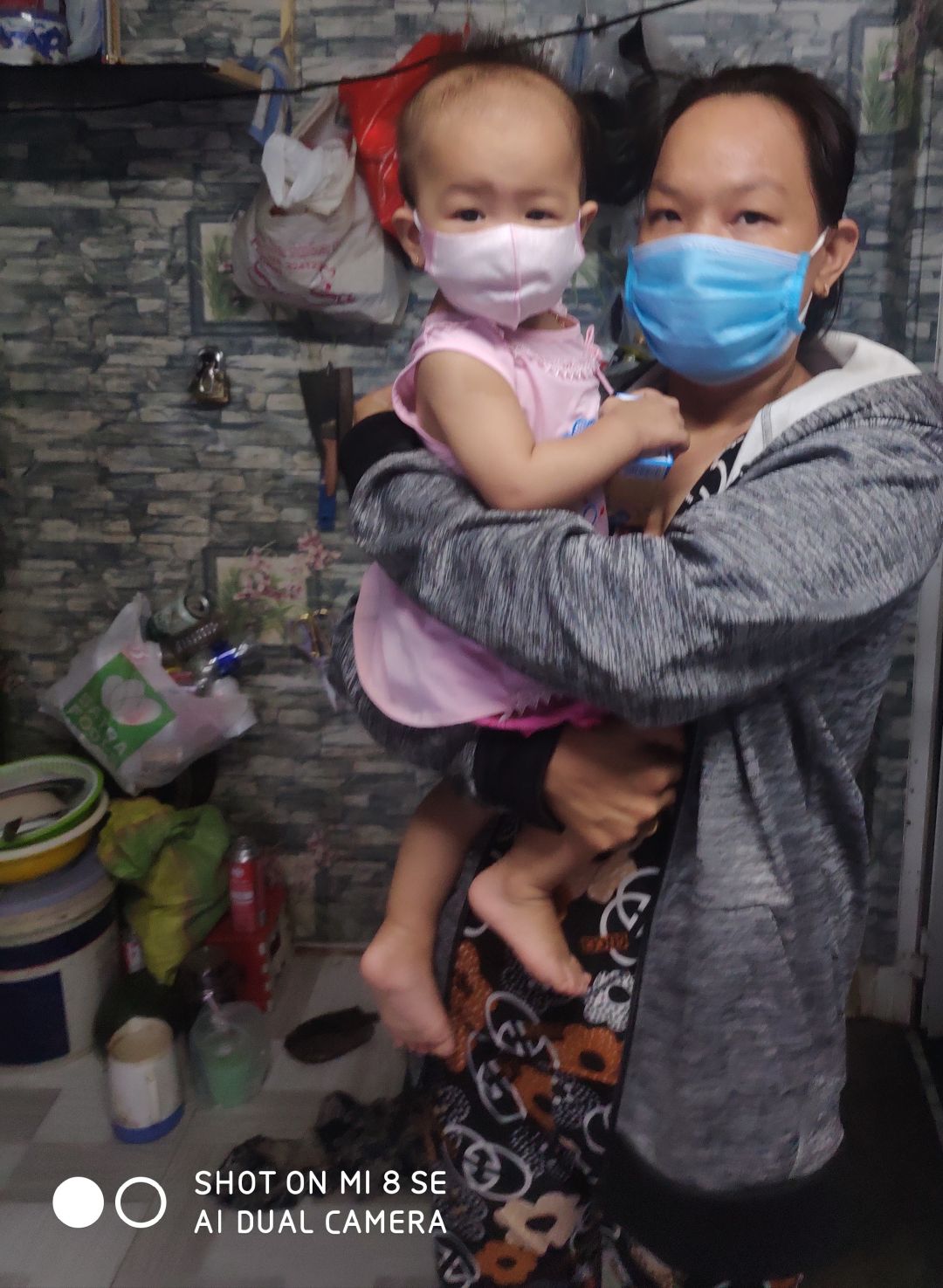Chồng làm phụ hồ vợ làm nghề bán bánh Bông Lan. có hai con nhỏ đứa lớn 6 tuổi đứa nhỏ gần 18 tháng tuổi.