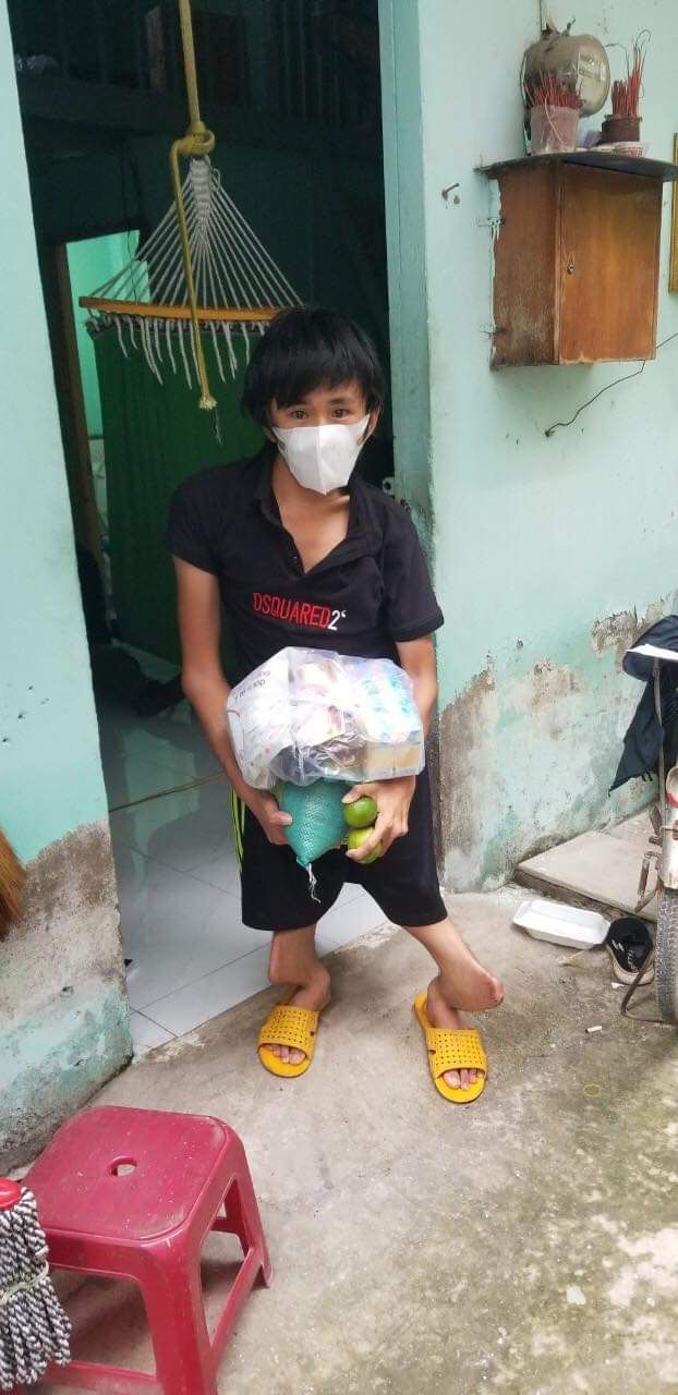 Hoàn cảnh gia đình: anh và vợ đều bị khuyết tật, có 1 người con cũng bị khuyêt tật và thiểu năng, anh mất thu nhập do dịch covid, thuộc diện hộ nghèo của khu phố.