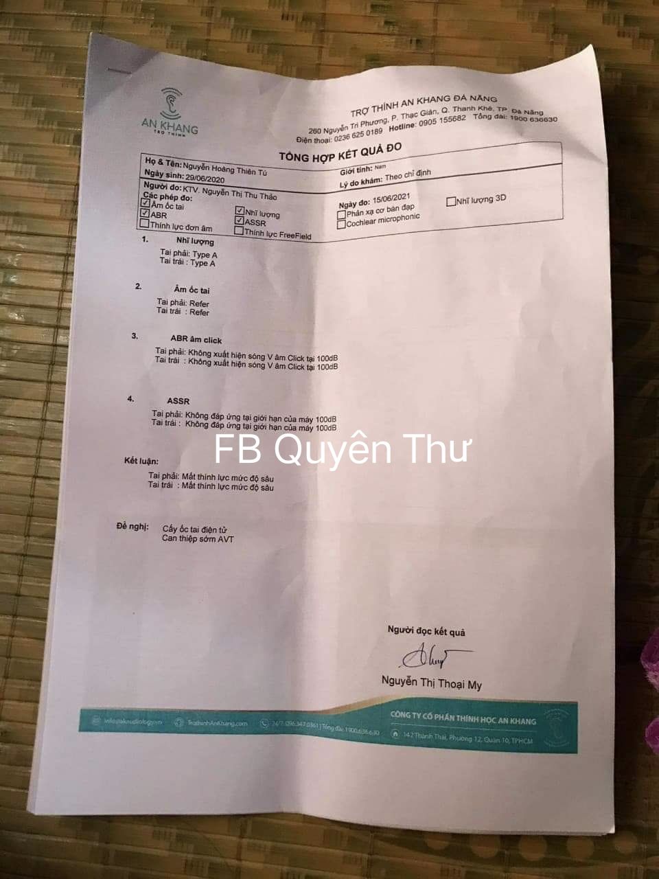 Tôi tên là Bùi Thị hà quyên hiện tôi đang cư trú tại thôn Đàn Trung xã Tam Đàn huyện Phú Ninh tỉnh Quảng Nam tôi hiện là giáo viên dạy gia sư tại nhà. Ngày 29/6 tôi có đi xác minh hoàn cảnh bé Thiên Tú. Khi tôi đến buổi chiều có gặp gỡ bà nội cháu đang làm bún bán nên tôi chỉ hỏi vài câu để thời gian cho Cô làm bún. Hoàn cảnh Cô rất tội năm 2015 đứa con đầu Cô mất, sau 7th chồng Cô cũng đi theo con trai mọi việc trong nhà đều tập trung vô gánh bún của Cô. Năm 2019 đứa con trai Cô cưới vợ,cô con dâu có bầu nhưng bị nhau tiền đạo phải nghỉ việc  dưỡng  thai rồi con sinh ra đau ốm nhập viện mãi nên cũng k đi làm chỉ có người chồng đi làm trưng bày bên Univer lương tháng đc 6.3tr cũng không đủ để trang trải Cô phải phụ thêm cho 2vc người con.  Nhưng hoàn cảnh không may đứa cháu nội lại bị bệnh điếc sâu, điếc nặng 2 tai không nghe được gì cả được 1 tuổi rồi nhưng cháu vẫn chưa bập bẹ được tiếng gì. Nhìn cháu khôi ngô lanh lợi ba mẹ ray rứt trong lòng nhưng kinh phí quá lớn vì để cháu nghe được phải cấy ốc tai điện tử chi phí cho 1 tai là 550 đến 750tr. Số tiền thật sự quá lớn có thế chấp căn nhà cũng chưa tới 200tr.  Nên gia đình tha thiết mong được Hội giúp đỡ để cháu có thể đc nghe đc nói như bao đứa trẻ khác. Nên tôi kính mong CLB xem xét giúp đỡ gia đình cháu ạ