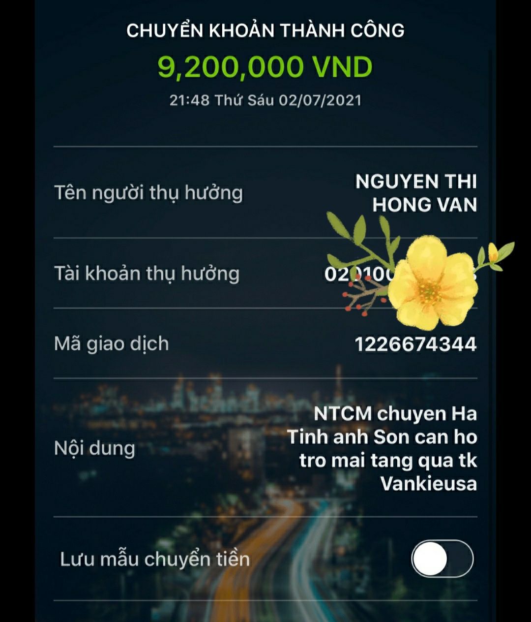 @Thocon : Em chuyển thêm 1,000,000đ của chị Nguyễn Việt Hoa (thành viên Hanoi) ủng hộ Gia đình anh Sơn tới Vânkiêusa dùm nhé.