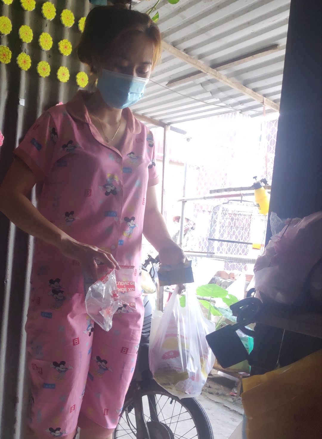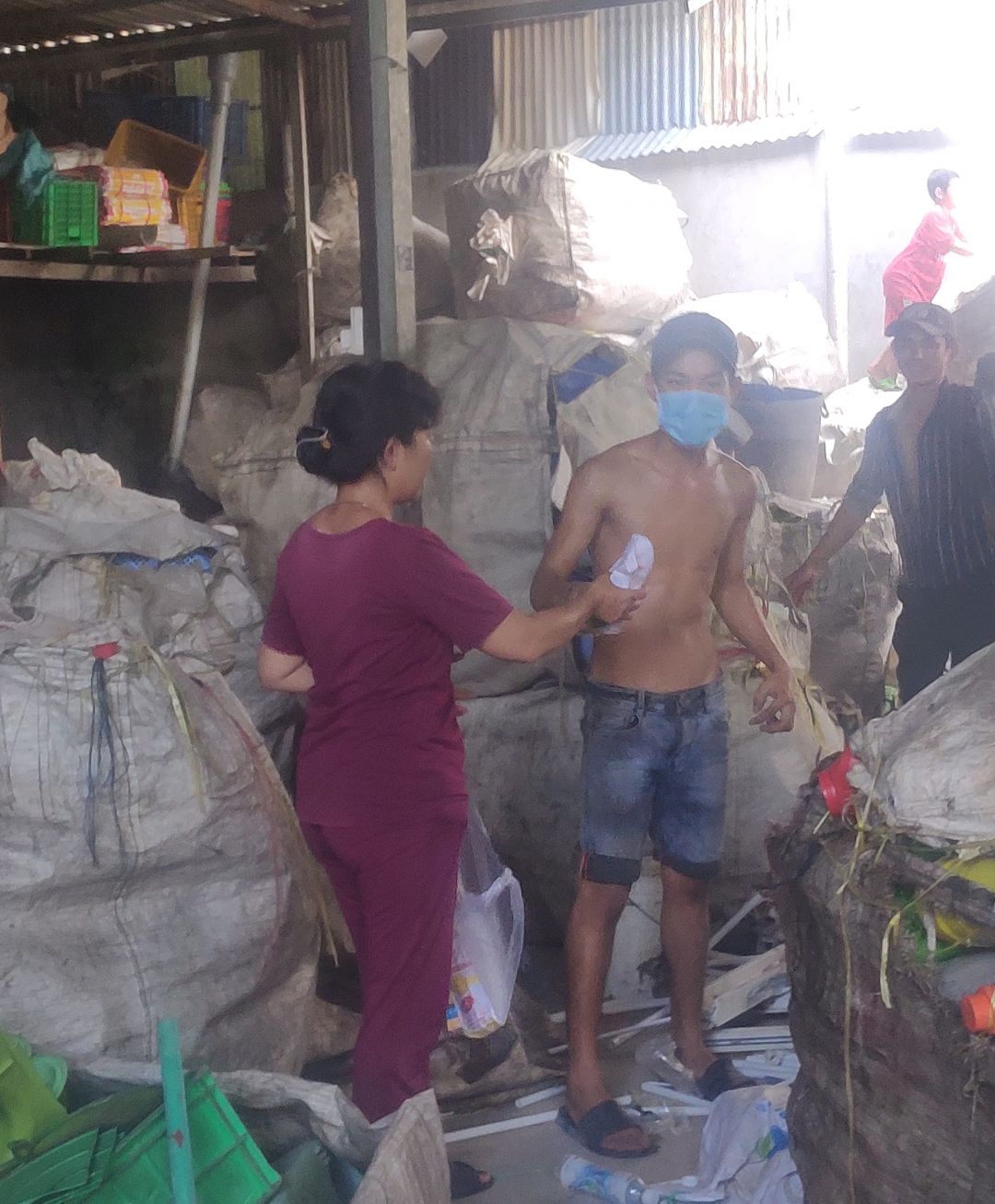Một buổi chiều phát bánh mì đến tai bà con lao động làm nghề ve chai.và một số người bán vé số ở xóm trọ của Mai Trâm.