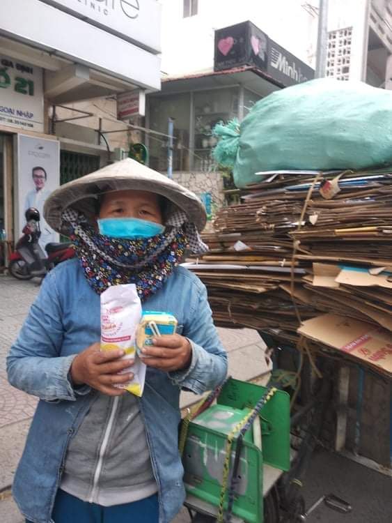 Một buổi chiều phát bánh mì đến tai bà con lao động làm nghề ve chai.và một số người bán vé số ở xóm trọ của Mai Trâm.