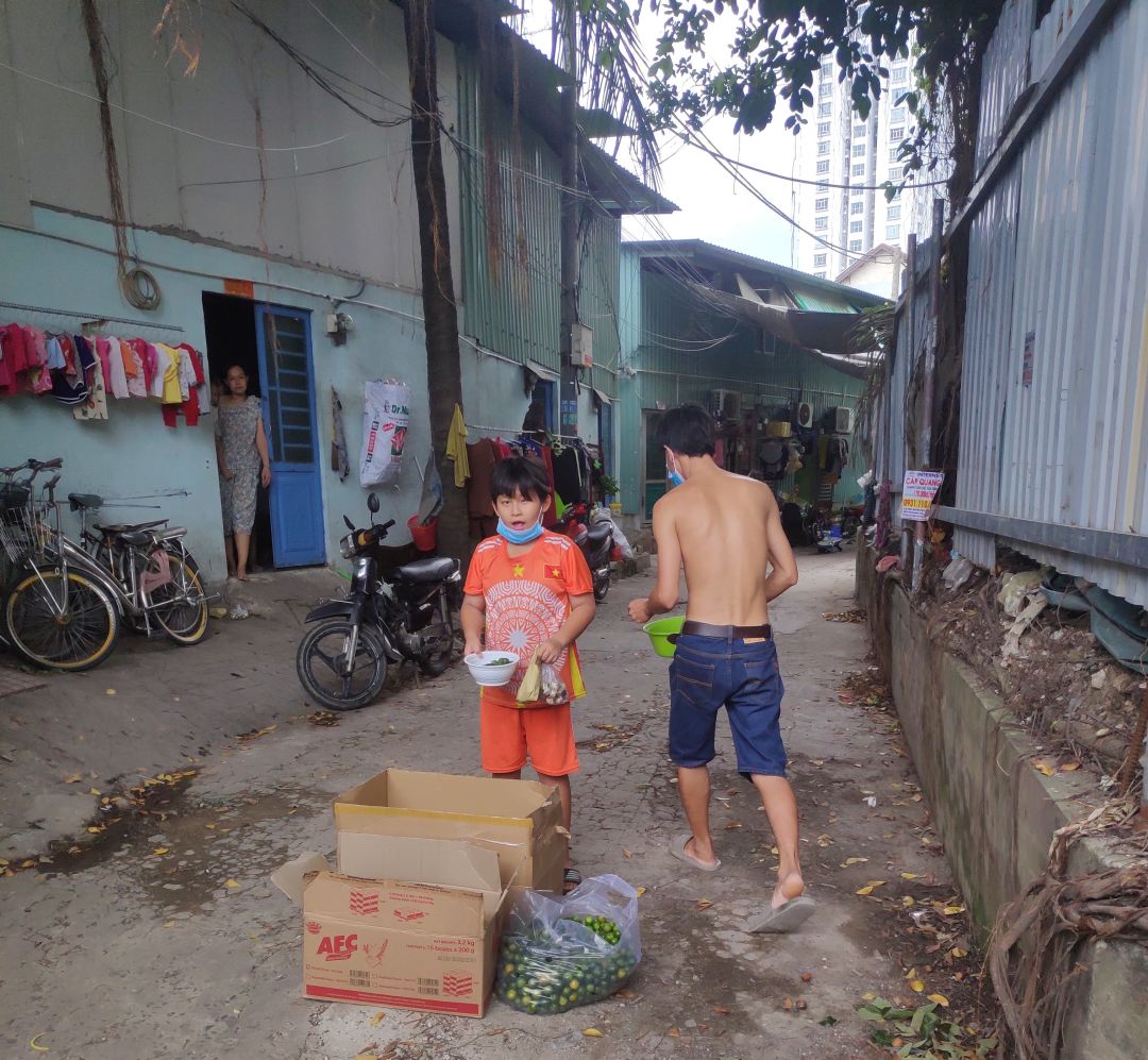 Tuyền gửi hình ảnh bà con nhận rau củ khu vực cách li hẻm 350 Lưu Hữu Phước phường 15 quận 8.
