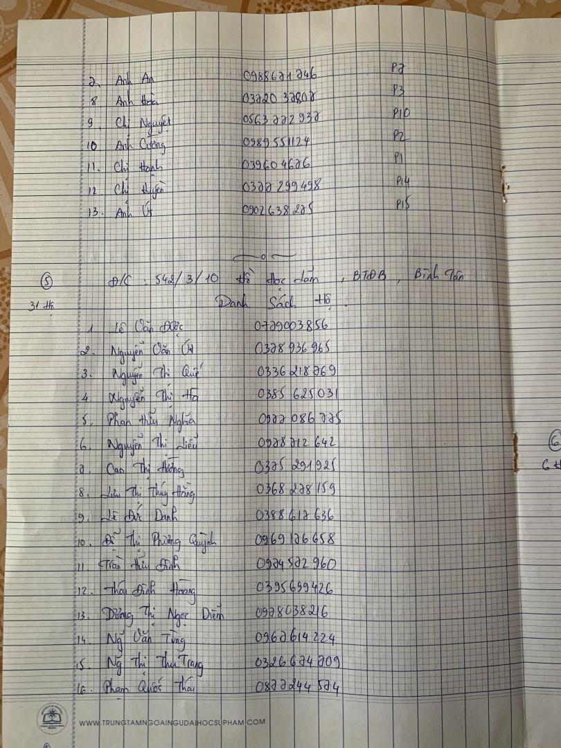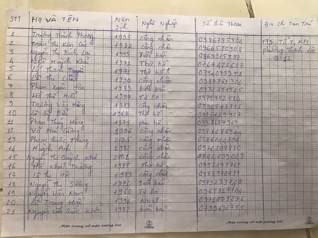 Tieuhuongduong xin gởi danh sách các thợ hồ xin hỗ trợ gạo, thực phẩm đang ở trọ tại đường 1A, phường Long Thạnh Mỹ, thành phố Thủ Đức.