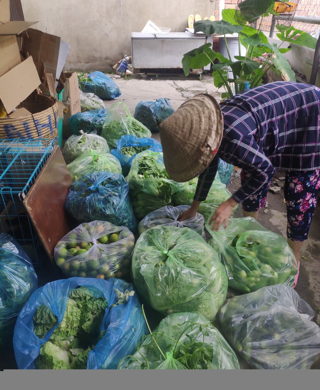 Hôm nay 29/8, bếp đã nhận được rau(cải ngọt, rau muống, đậu bắp, dưa leo mỗi loại 20 kí), chanh 10 kí và trứng 20 vỉ, 10 cái/vỉ. Sau khi nhận đã bàn giao cho chị Uyên tổ trưởng tổ 7, kp1 và đại diện xóm trọ (chị Đỗ Thị Nguyệt/sđt: 0839736164). Vì đi lại khó khăn và tiếp xúc hạn chế nên không kịp chụp hình a.