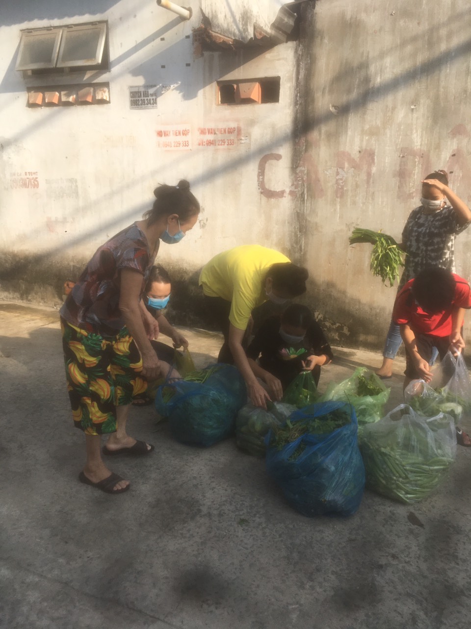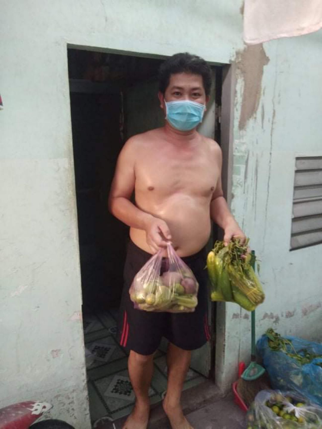 Tieuhuongduong xin gởi hình ảnh nhận rau củ và quà hỗ trợ tăng cường sức đề kháng mùa dịch của nhóm thợ hồ trọ tại đường 1A, phường Long Thạnh Mỹ, thành phố Thủ Đức.