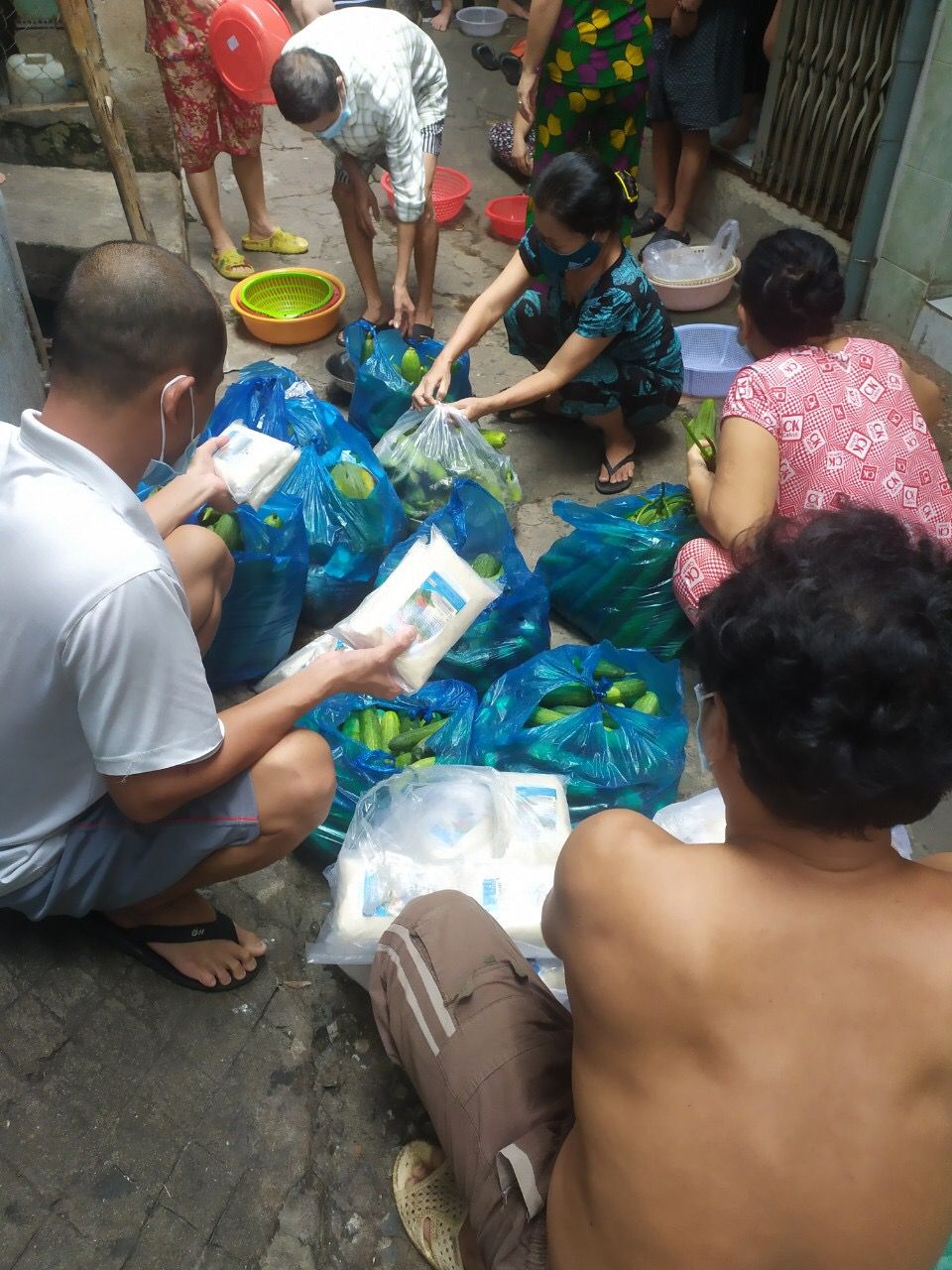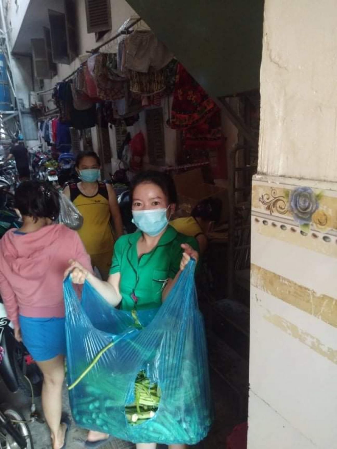 Nếu được nhận hỗ trợ từ chương trình, thực phẩm sẽ được bàn giao cho chị Uyên tổ trưởng và chị sẽ gọi đại diện xóm trọ đến nhận.