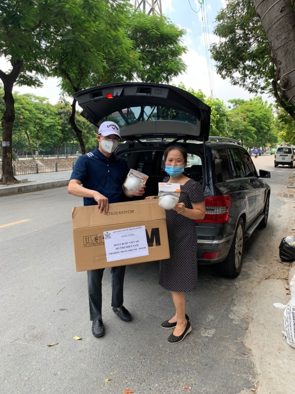 và sự hỗ trợ của Bác sỹ An Yên - lô hàng khẩu trang HDX - NIOSH N95 gồm 1.136 chiếc đã được đưa về đến Hà Nội kịp thời gửi cho tiền tuyến