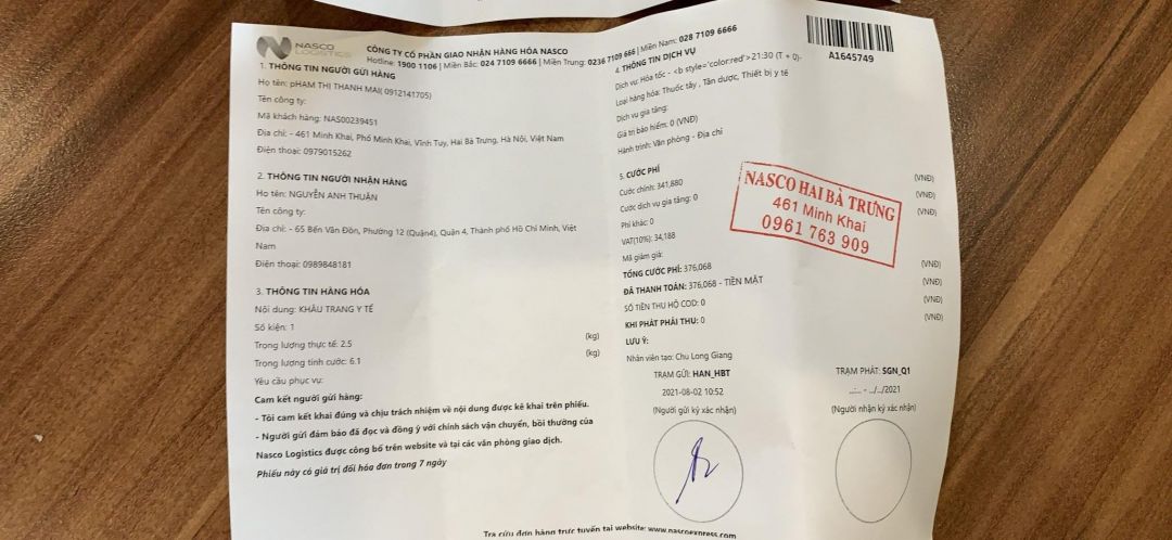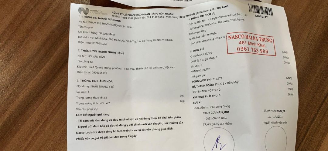 Em xin gửi biên lai đi HCM và hình ảnh viện Nhi nhận hàng