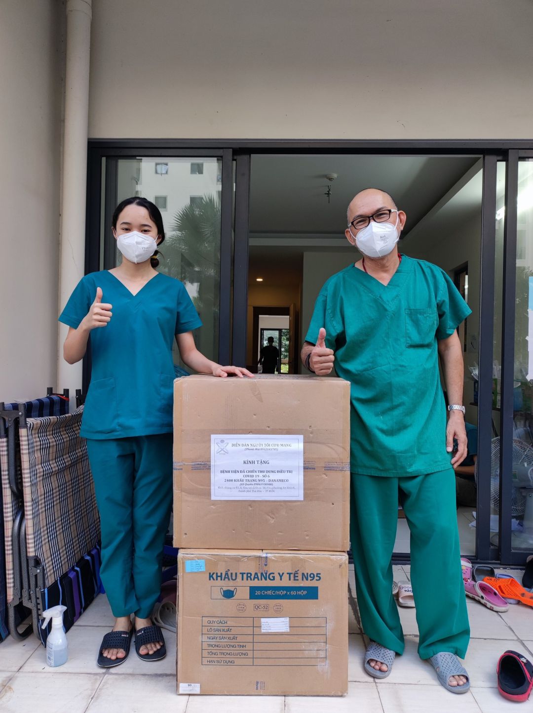 Đến ngày hôm nay sau nhiều nỗ lực, những chiếc khẩu trang đạt chuẩn N95 – made in Việt Nam của Danameco đã được chuyển đến cán bộ tại BV dã chiến thu dung điều trị Covid 19 số 6. Như vậy cùng với 1.136 chiếc khẩu trang HDX – NIOSH của Mỹ được trao cho các đơn vị và các anh chị bác sỹ hồi sức tham gia chiến dịch trước đó, toàn bộ số khẩu trang đã được nhóm chúng tôi trao tặng các chiến sĩ tuyến đầu tại tâm dich TP HCM. Thay mặt nhóm làm Chương trình xin: