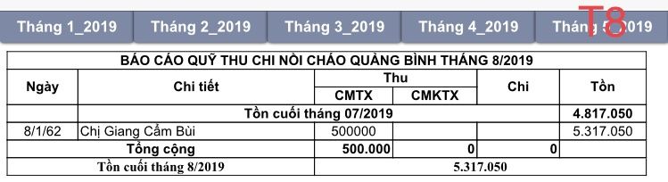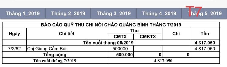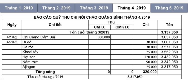 Nồi cháo quảng bình- báo cáo quỹ năm 2019