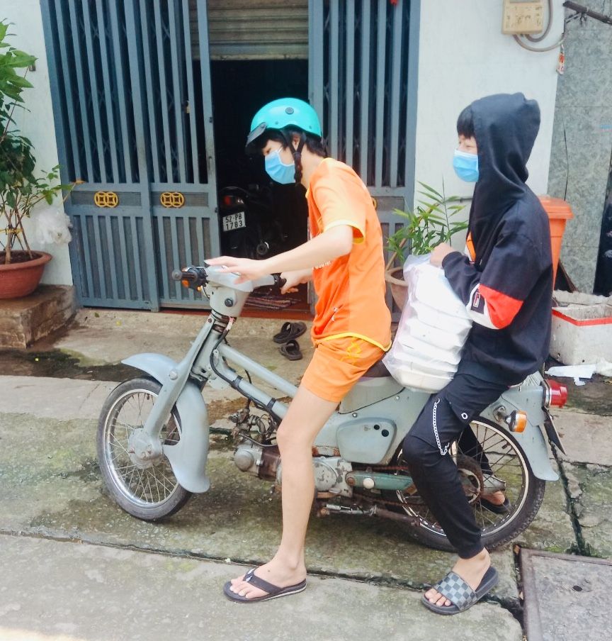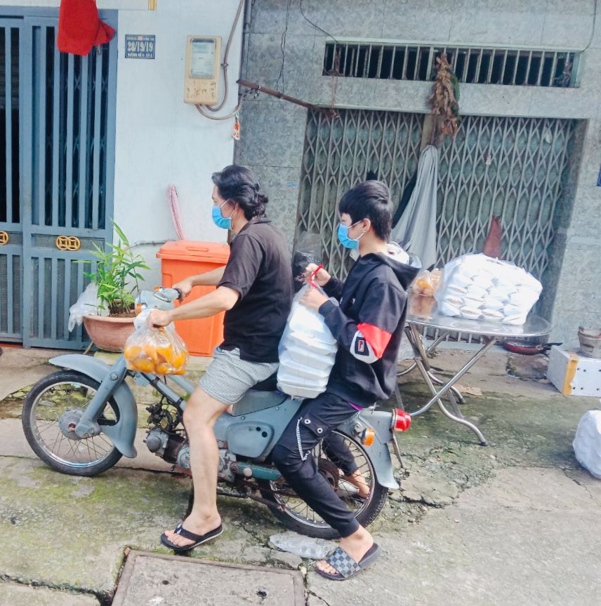 Bếp nhà An cũng đã đi phát cam cho bà con ăn có vitamin, ngăn ngừa covid.