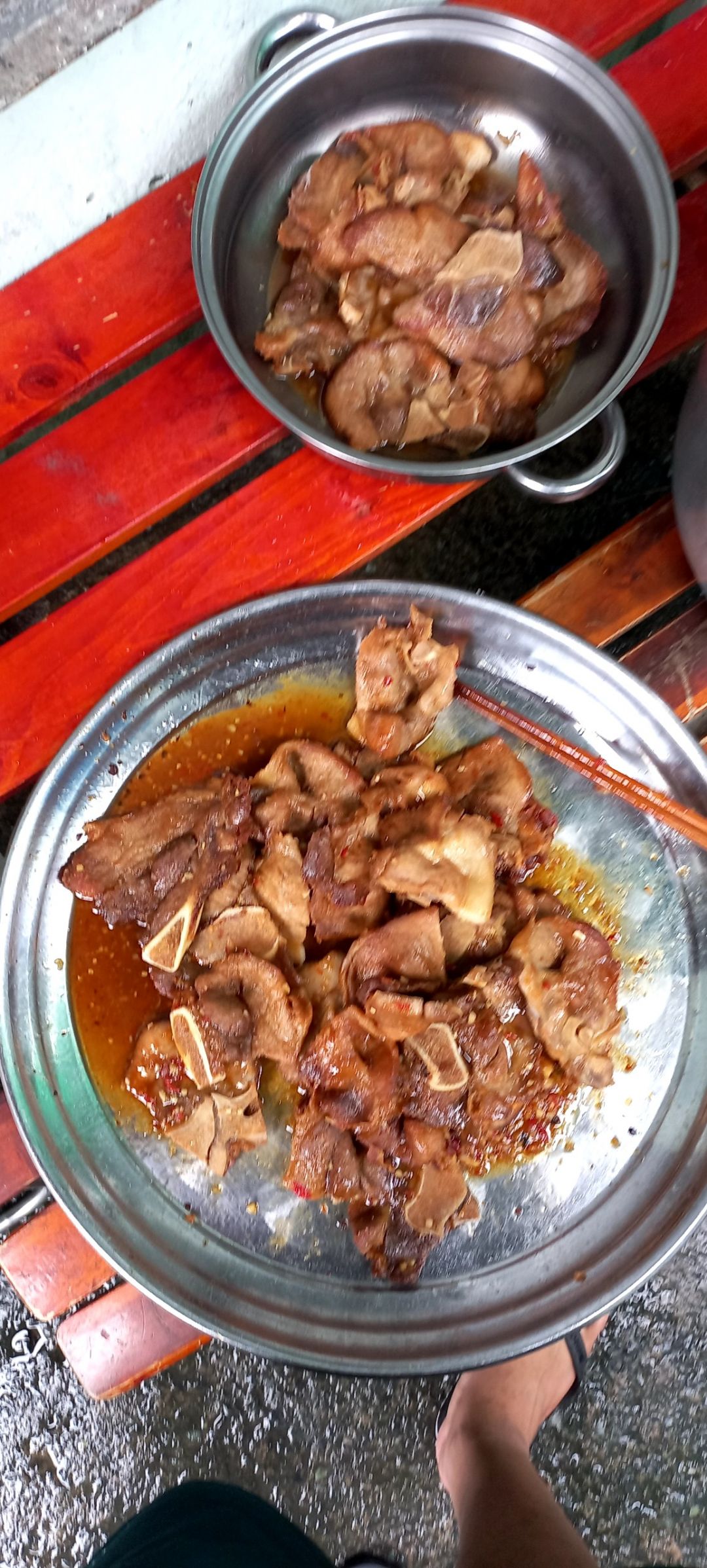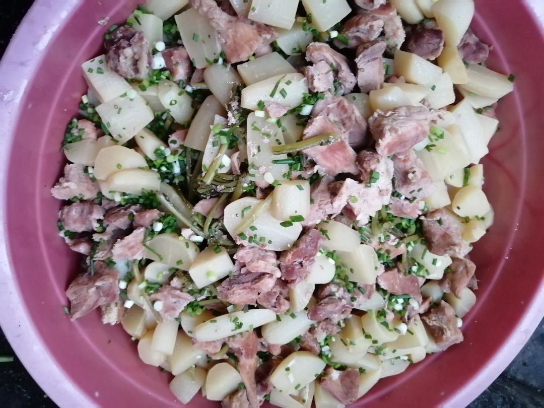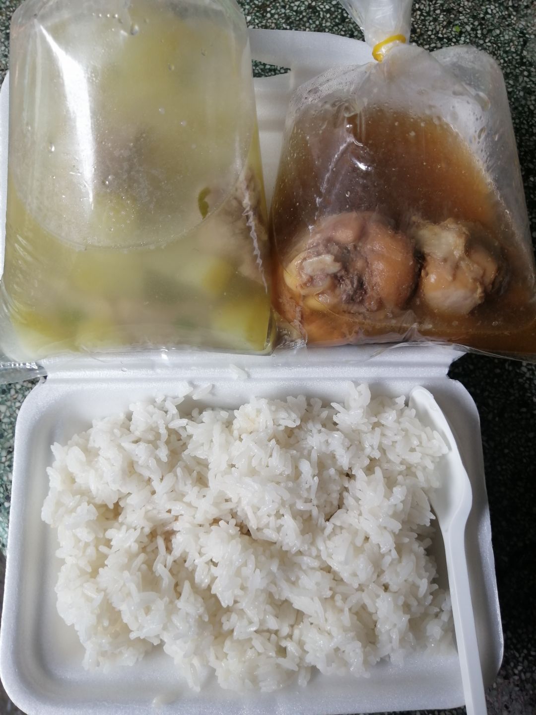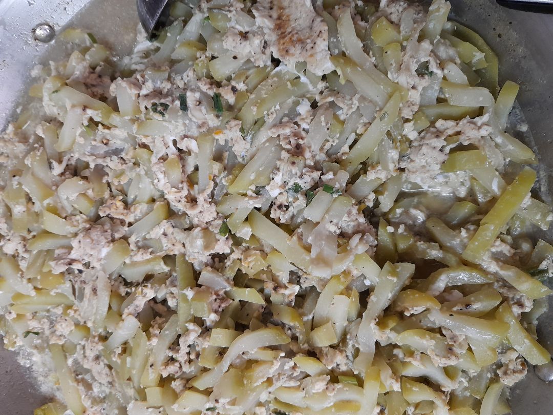 Chiều nấu 275 phần cơm chả cá chiên sốt cà; rau muống xào tỏi; canh cải ngọt+ sườn que.