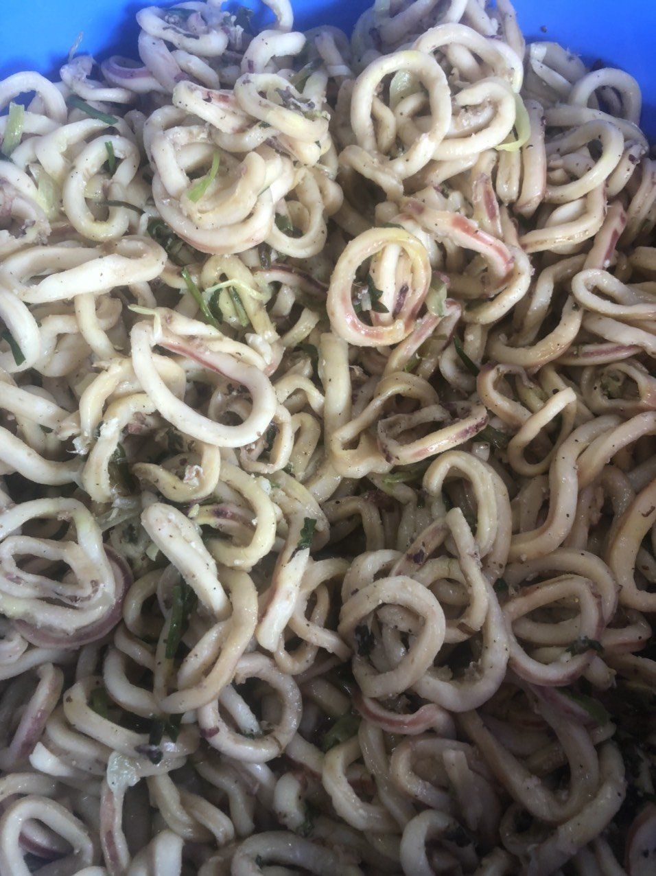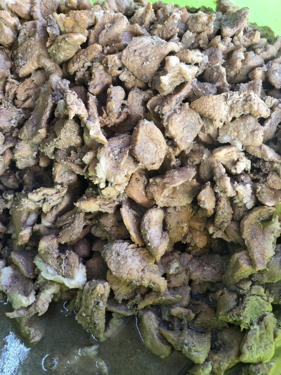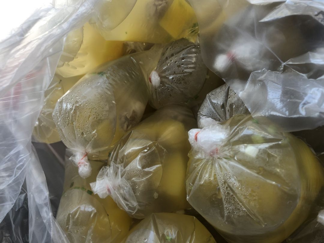 Trong 500 phần cơm bếp Thảo nấu cho dã chiến 8 hôm nay có cơm thịt kho khô, cơm thịt gà và một số ít là cơm mực xào. Canh hôm nay là canh bí mà bếp quên chụp hình. Nguyên liệu được hỗ trợ từ những nhà hảo tâm của chương trình Bếp Yêu Thương và anh Tman cùng những người bạn.