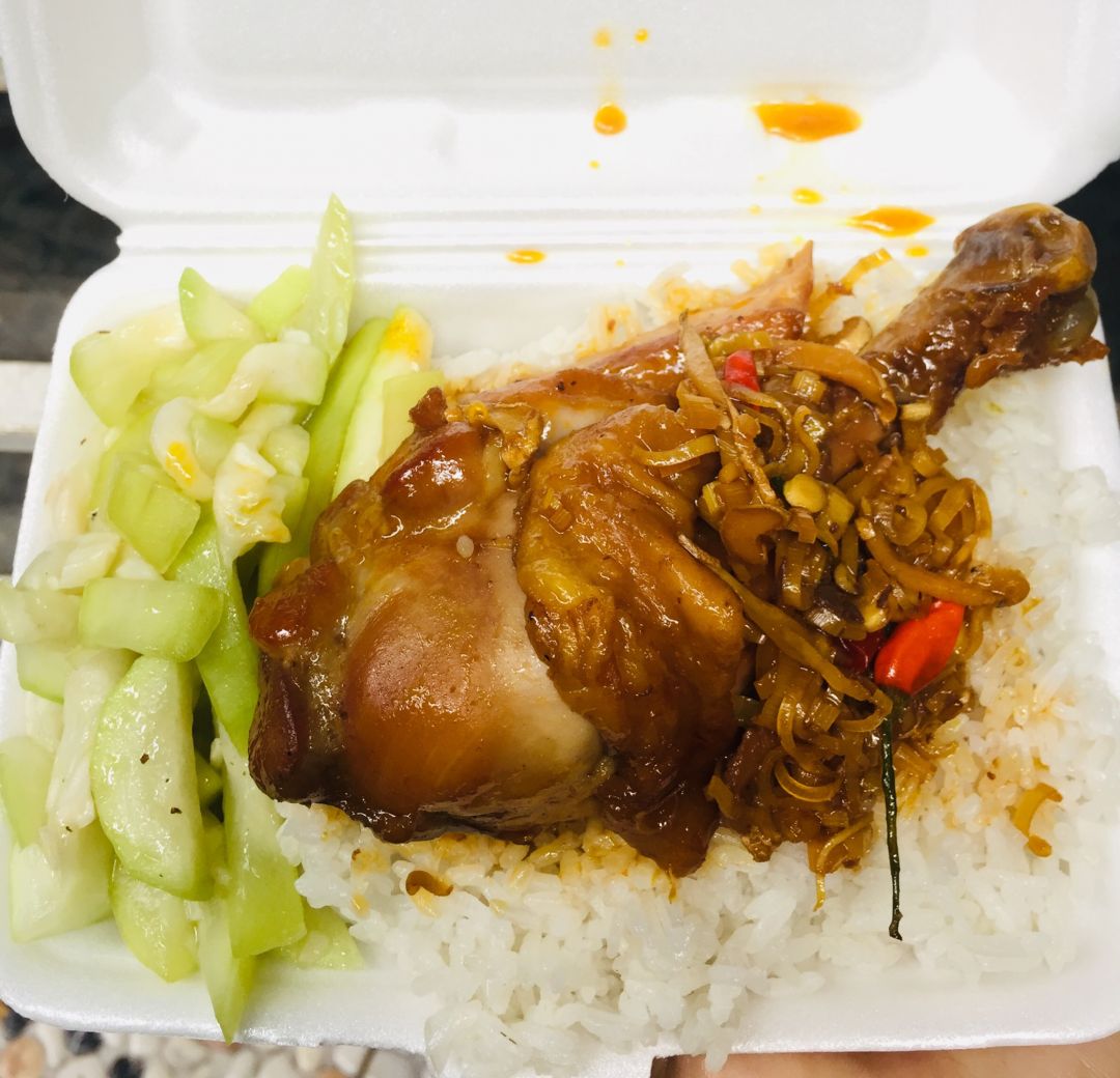 Một nhân viên của phòng Công tác Xã hội đang dùng suât cơm gà của bếp Thảo đây các bạn.