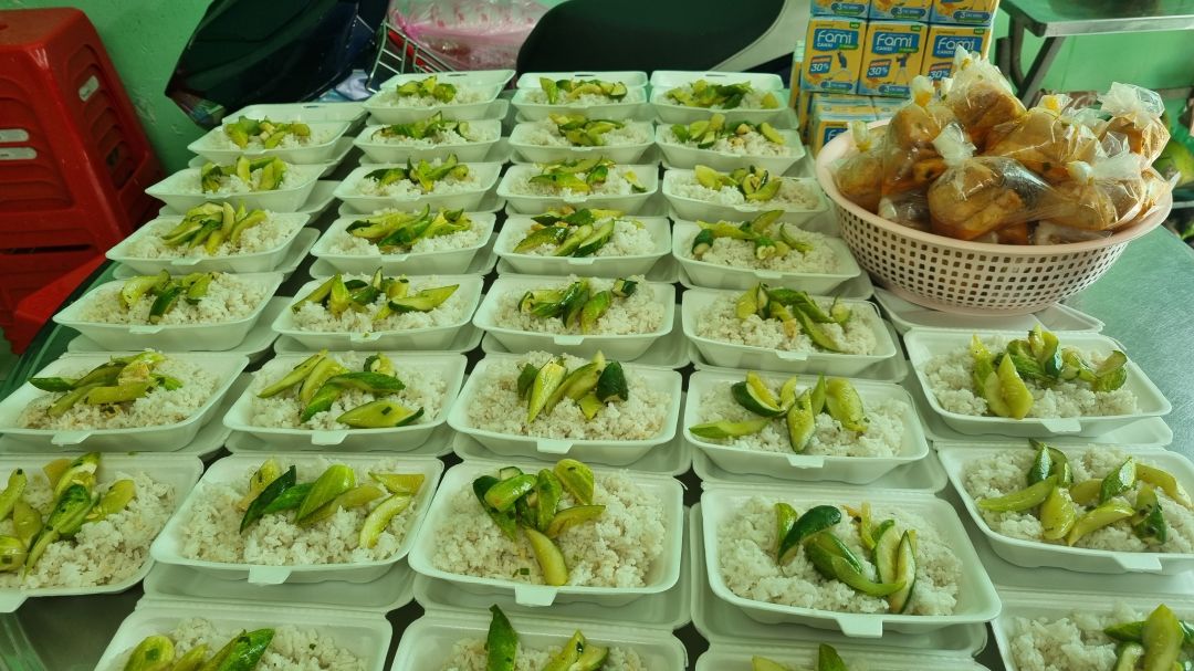 Trong thời gian qua bếp nhà An đăng kí 300 phần ăn/ ngày. Nhưng gần đây số lượng ca dương tính covid và số hộ cách ly cũng như bà con nghèo xung quanh khu vực nghĩa trang càng tăng, nên bếp nhà An xin phép đăng kí tăng phần ăn lên 420 phần ăn/ ngày.