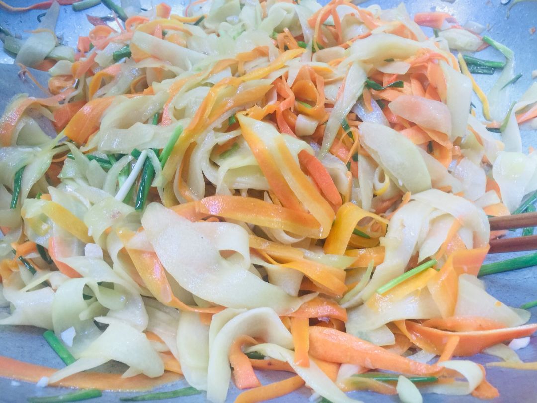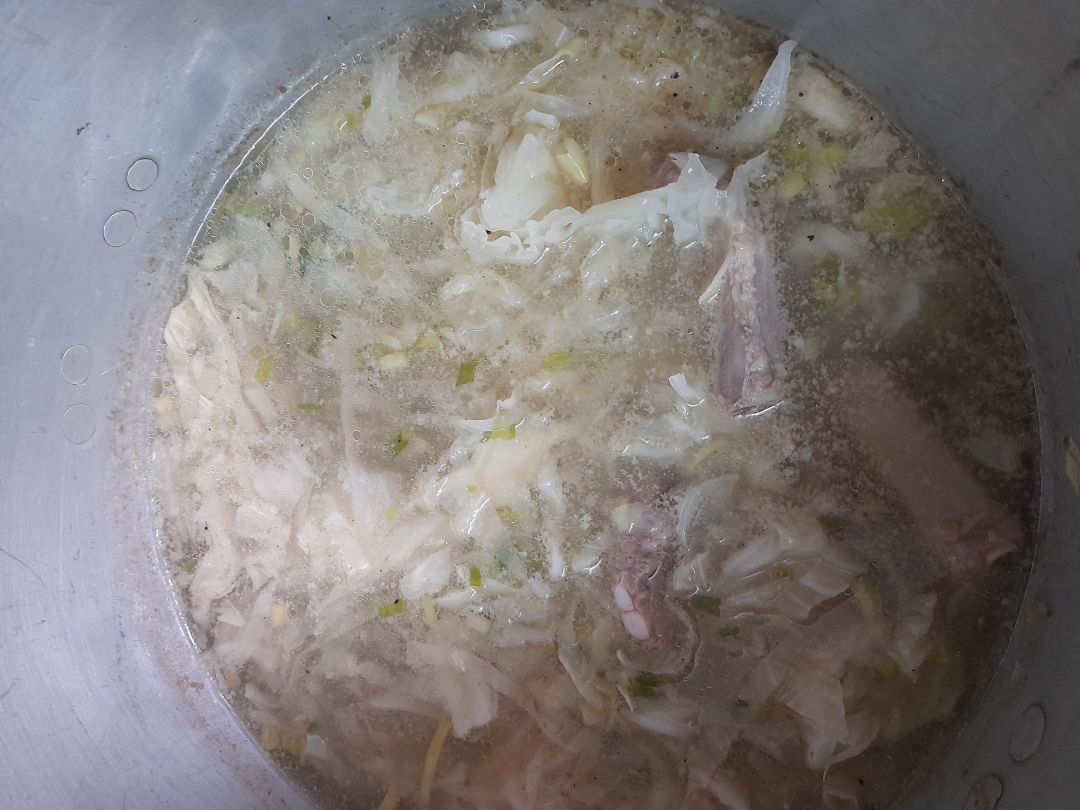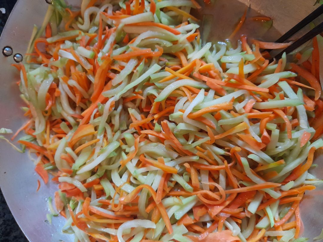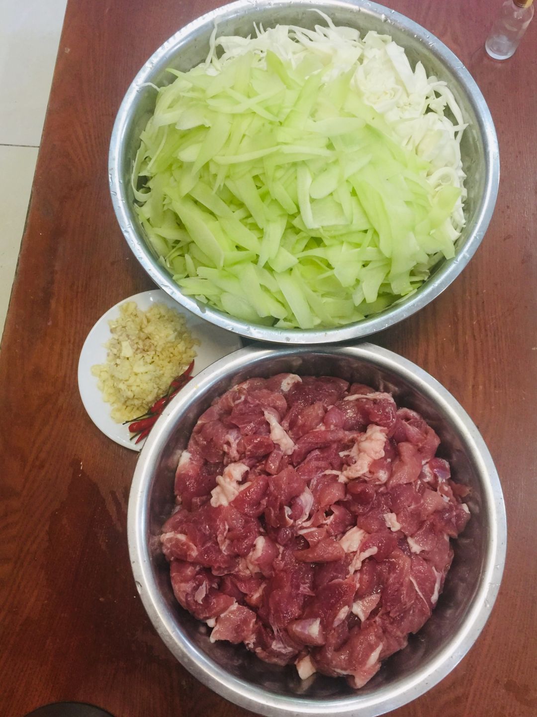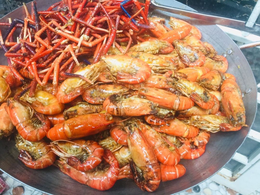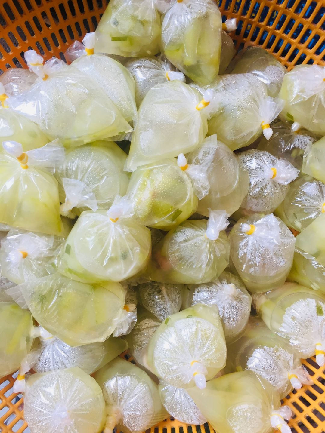 Sáng nấu 160 phần cơm tôm thịt rim tiêu; bắp cải+ cà rốt xào tỏi+ sữa Fami.