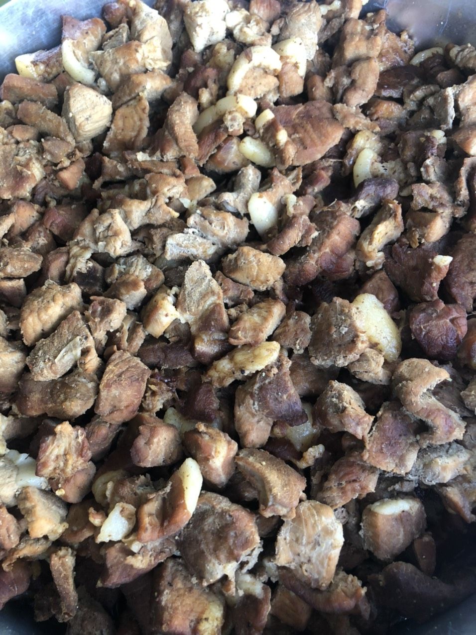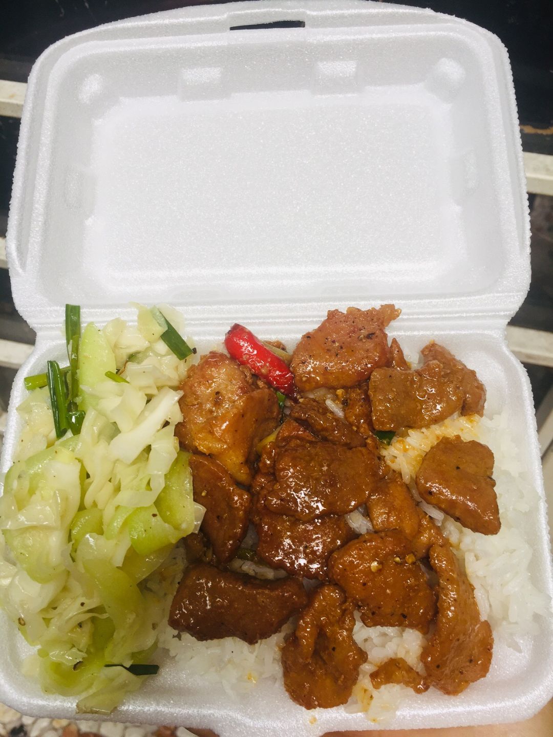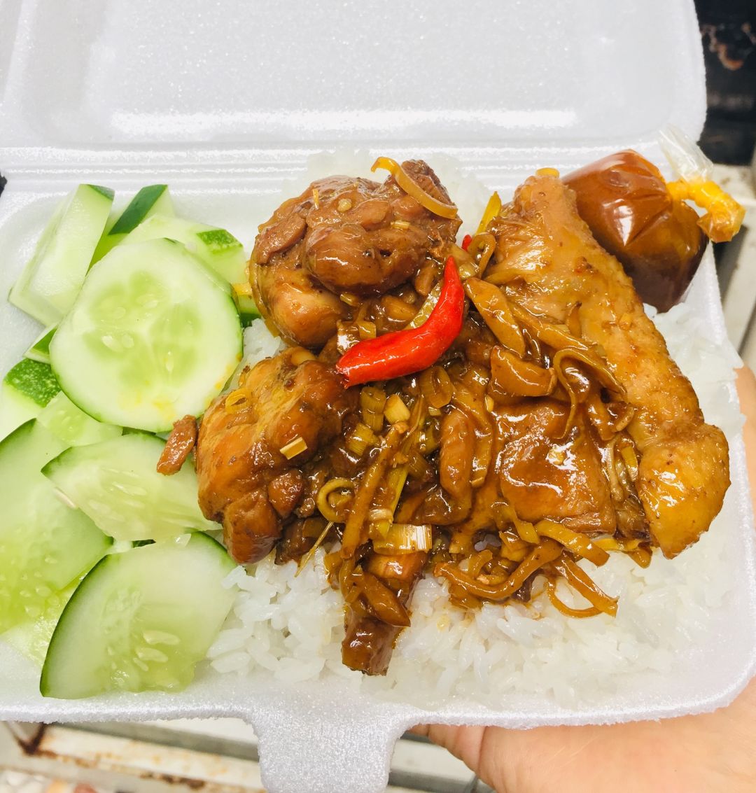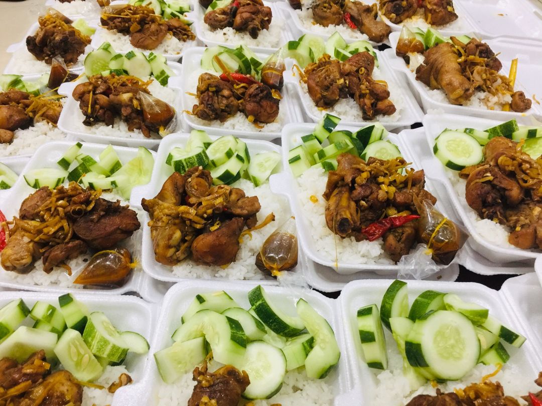 Chiều nấu 170 phần cơm thịt rim tiêu; trứng chiên;dưa leo; canh bí đao+ sườn que.