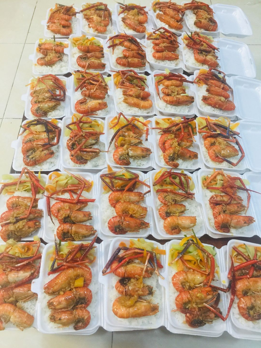 Hôm nay nhà sonnynhan nấu 60 phần cơm chiều tặng các y bác sĩ phường An Lạc  - Bình Tân. Thực đơn : tôm càng rim mặn, súp lơ xào, canh súp sườn, sữa fami.