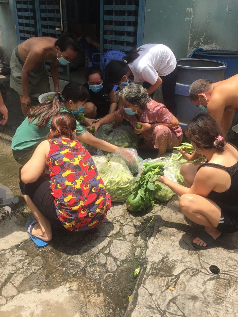 Và bếp nhà An nhận rất nhiều rau đem tặng cho các khu thuê trọ nghèo cũng như khu cách ly cho bà con.