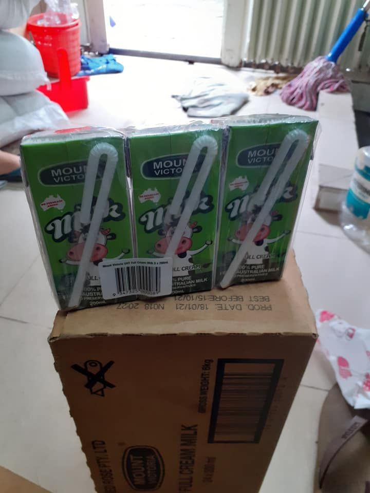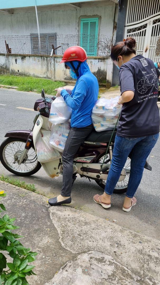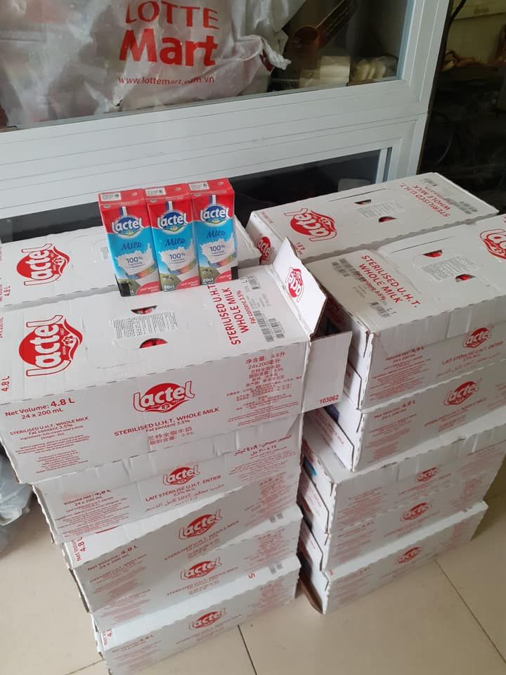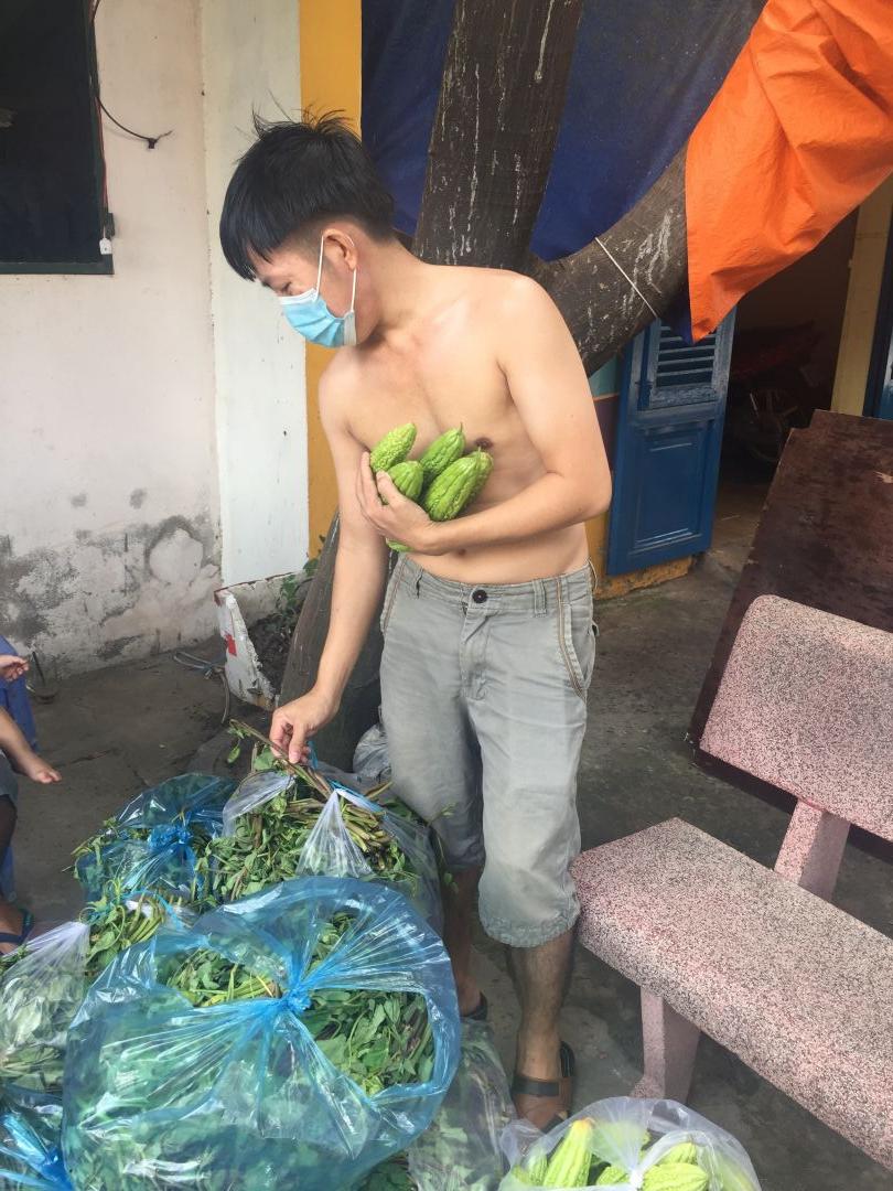 Đã nhận 50kg khổ qua, 150kg dưa leo, 80kg rau muống, 6 thùng sữa đậu nành đem phát cho các bà con thuê trọ khó khăn và khu phong toả xung quanh.