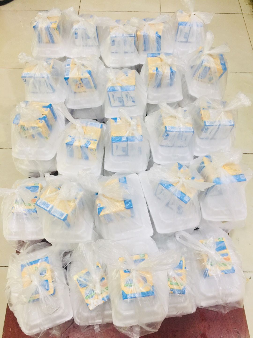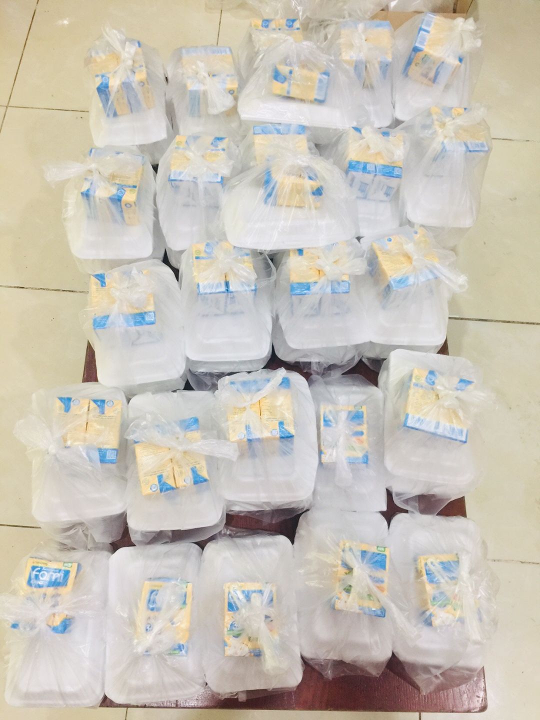 Buổi xế phát bánh mì và sữa Fami vào các khu phong toả.