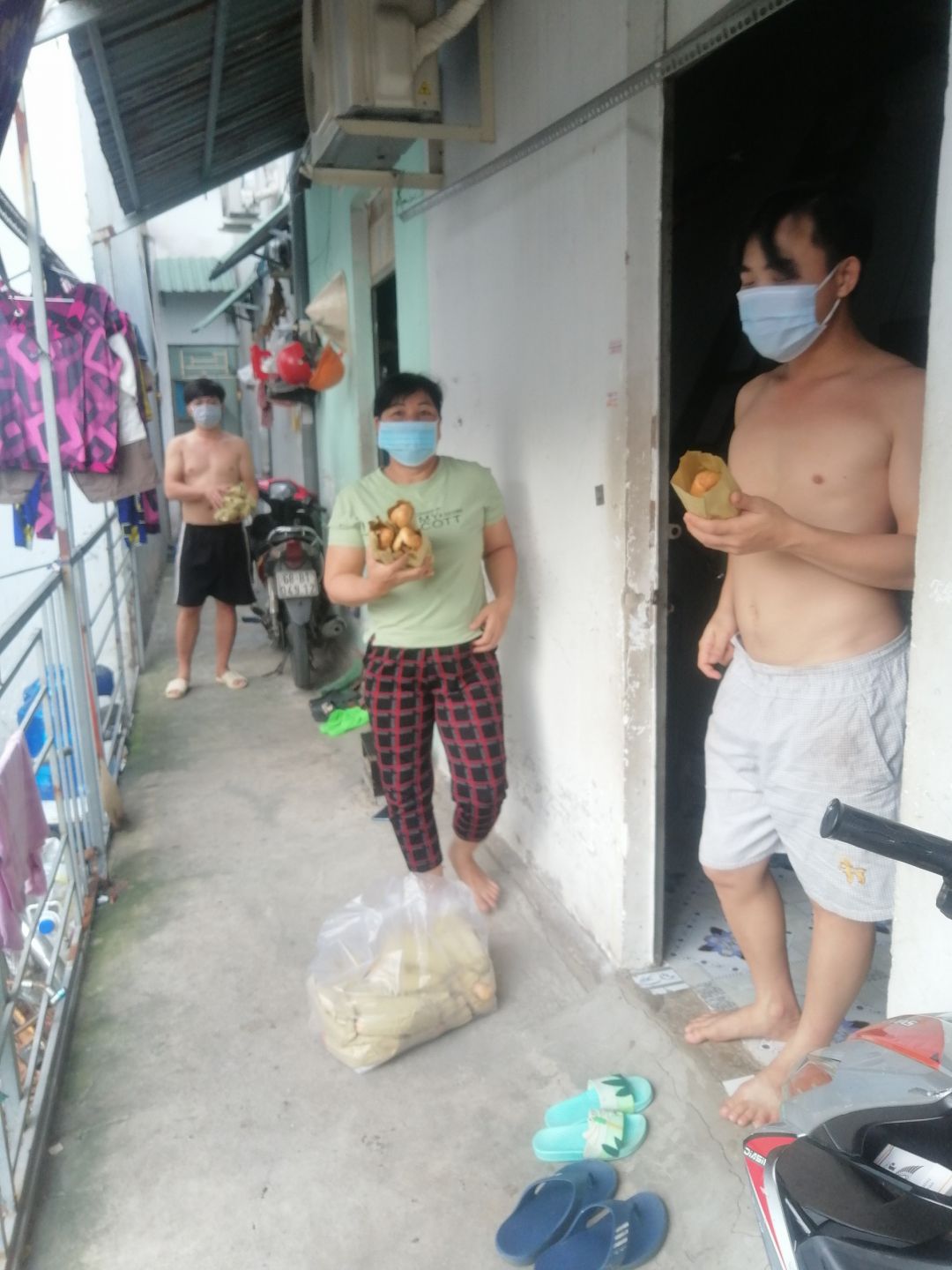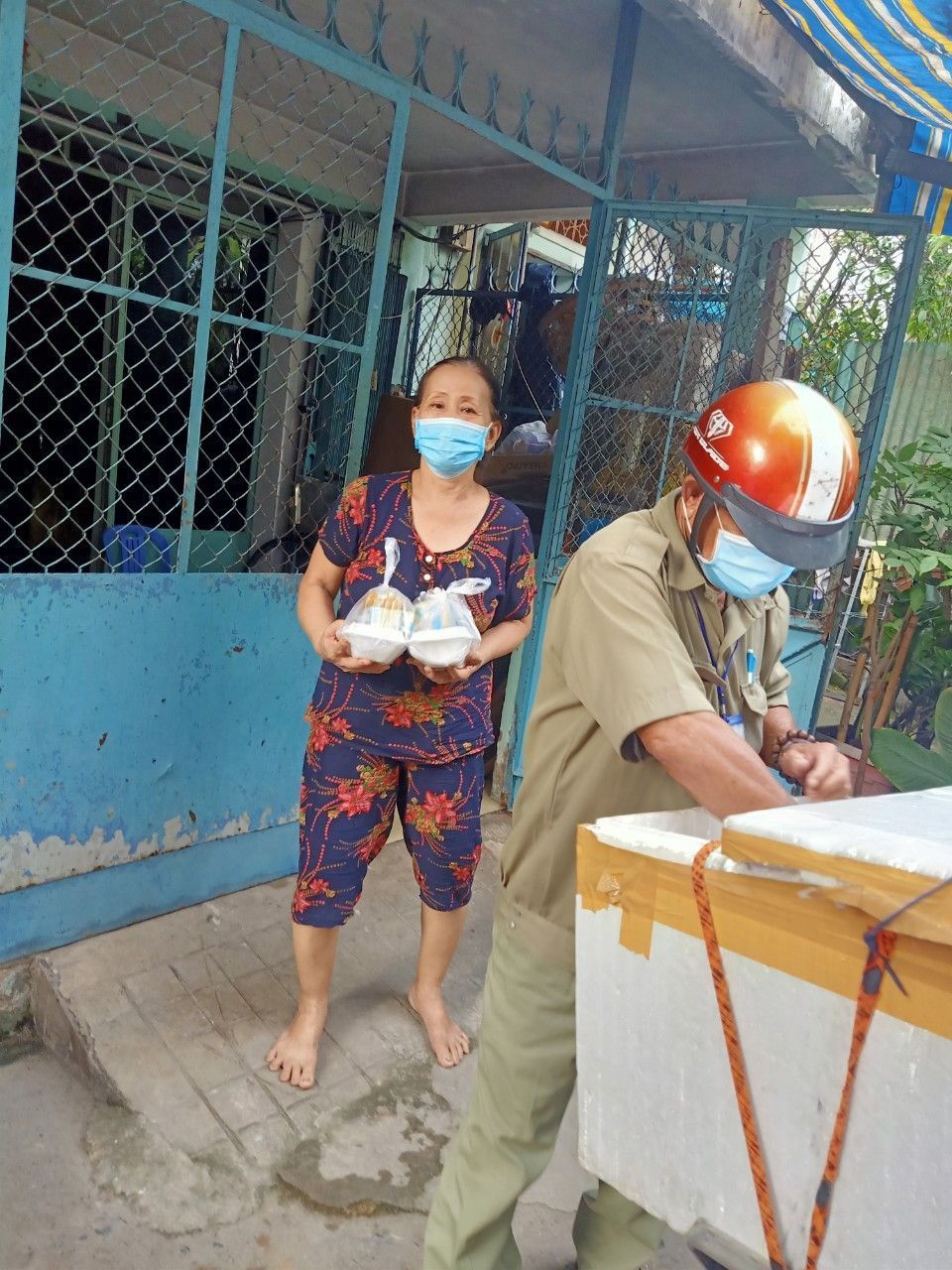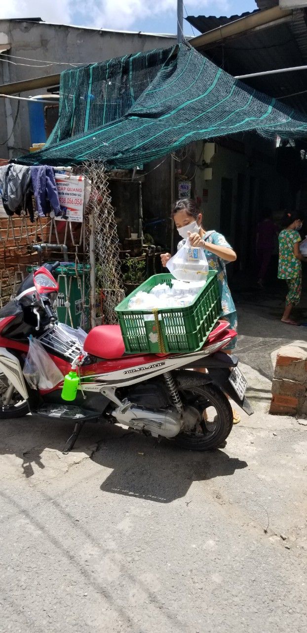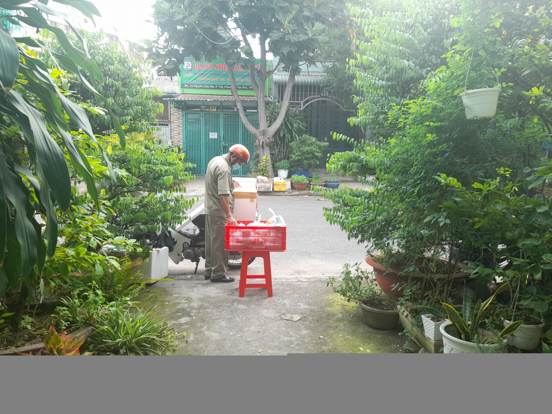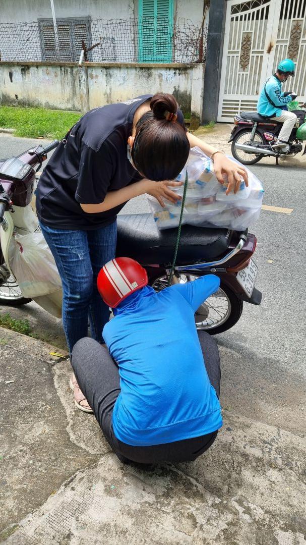 Cách thức giao: vì là hẻm cách ly nên sau khi nấu xong sẽ để trên kệ trước nhà; người đại diện của từng khu vực sẽ tới nhận theo khung giờ khác nhau và chuyển đến những hộ khó khăn.