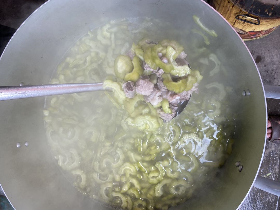 2/8, bếp nhà Sonnynhan nấu 60 phần cơm chiều. Thực đơn : chả cá kho với thịt, canh khổ qua với sườn, rau muống xào, sữa Fami, nhãn.