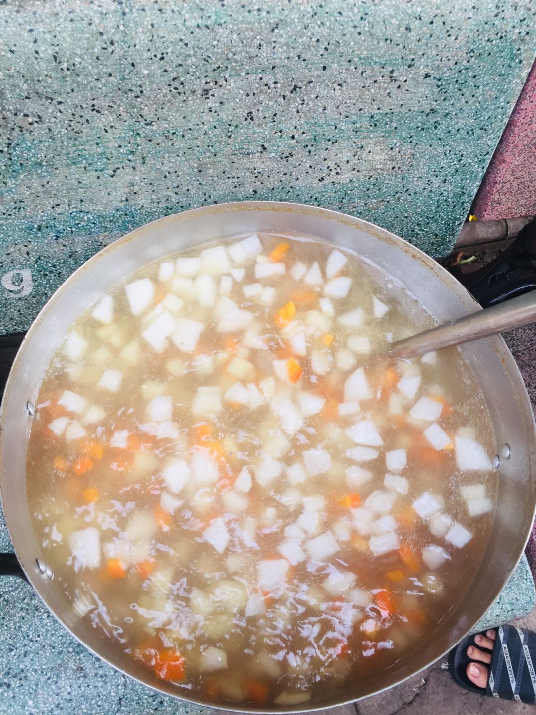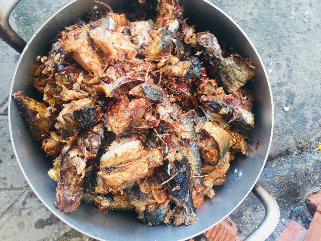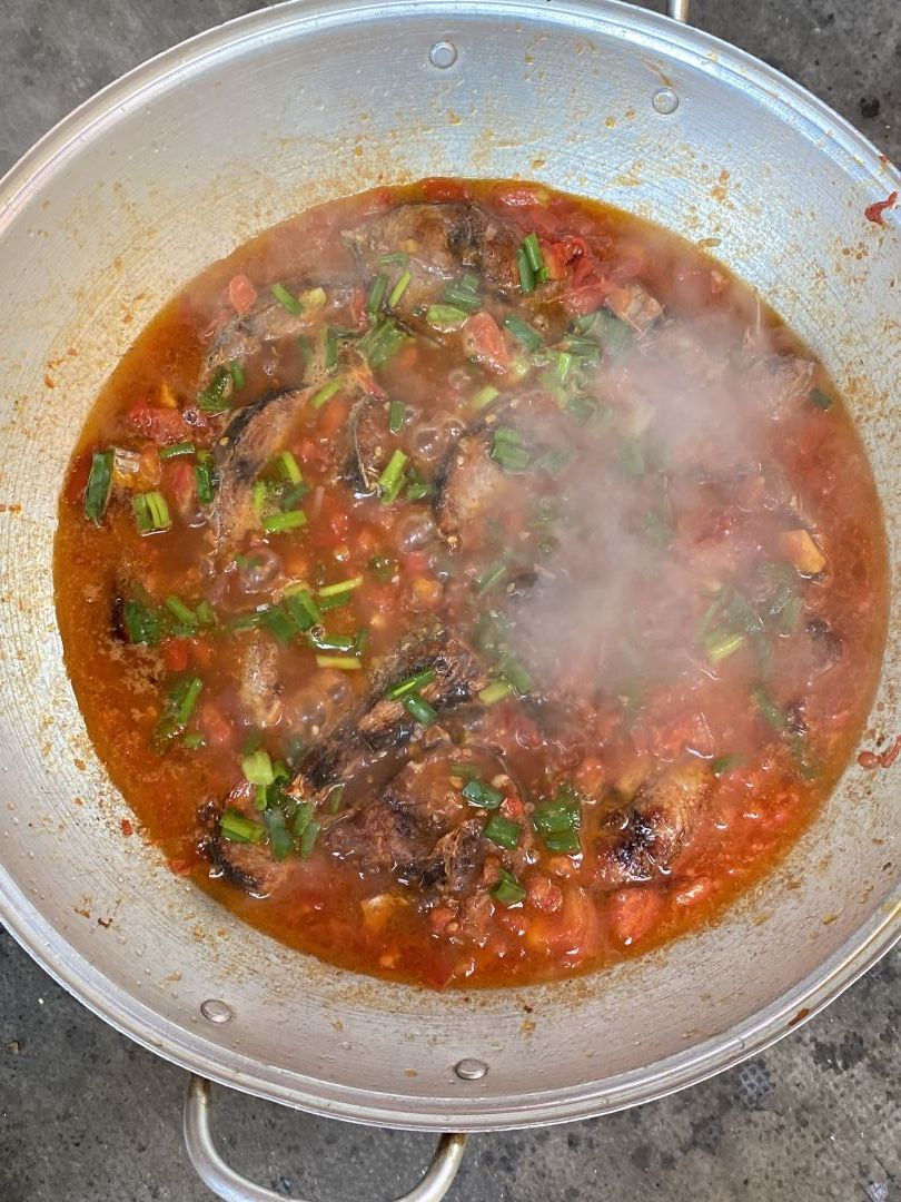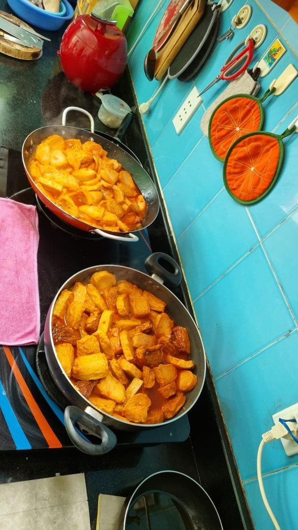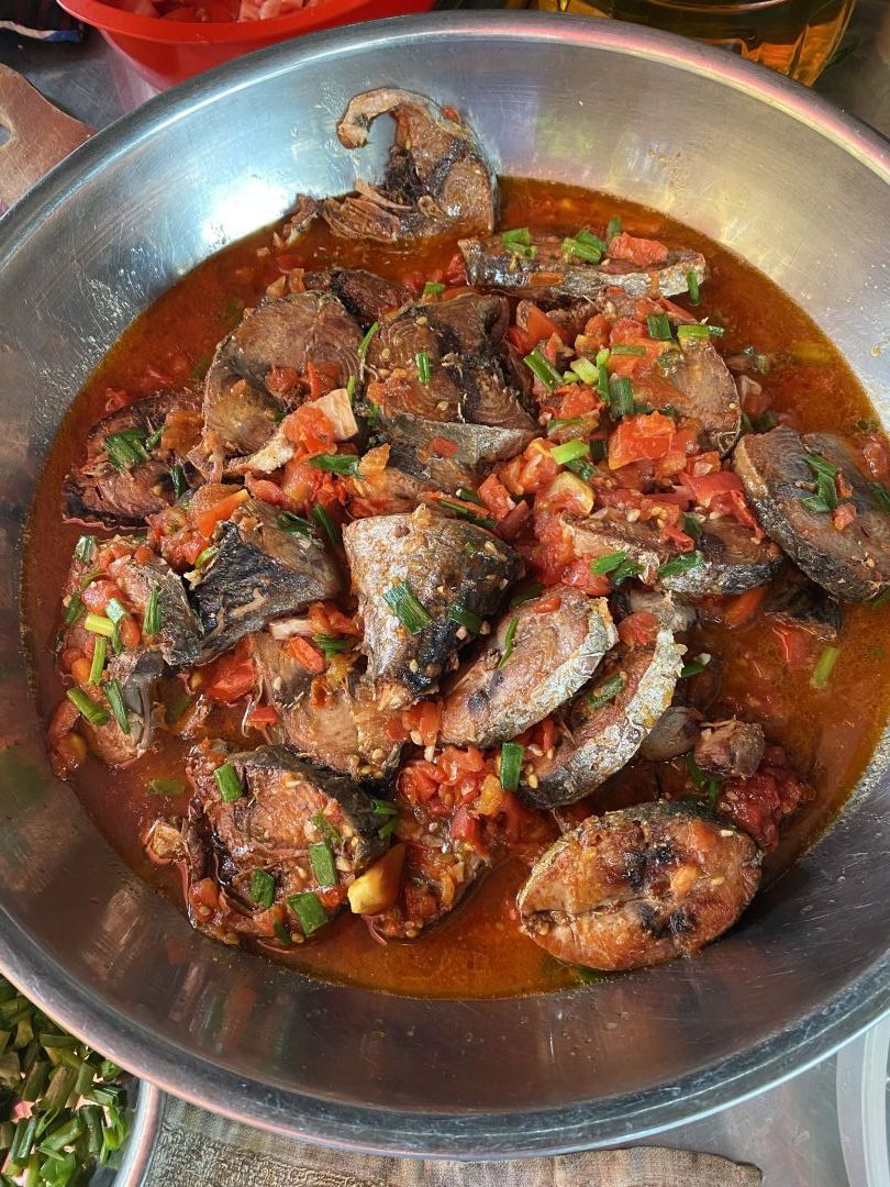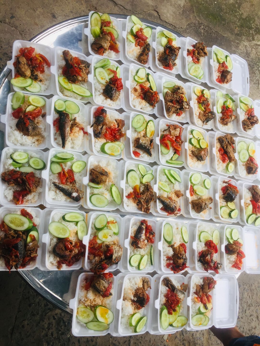 Chiều nấu 150 phần cơm cá chiên sốt cà+ dưa leo, canh khoai tây+ cà rốt+ củ cải trắng+ sườn que.