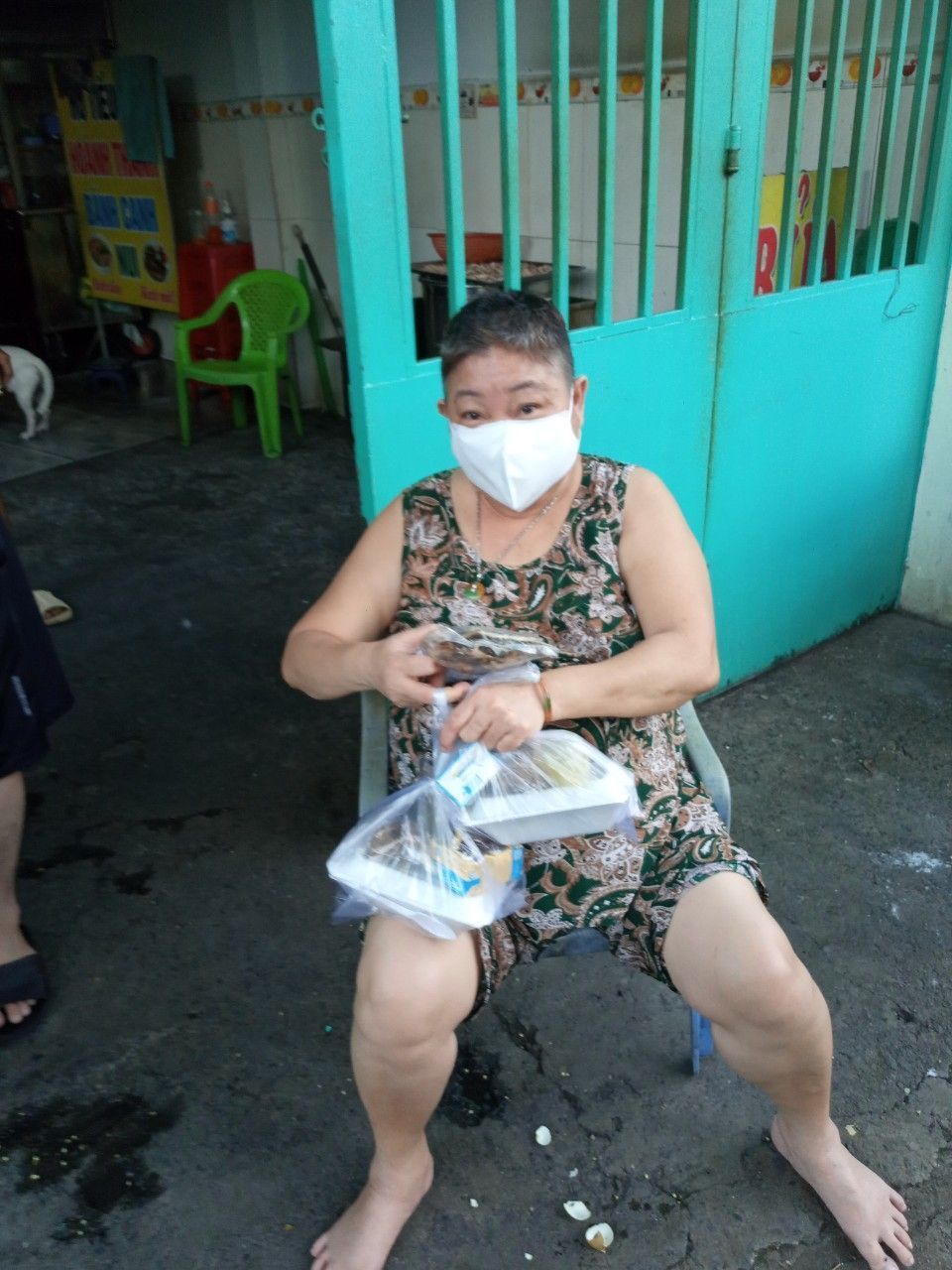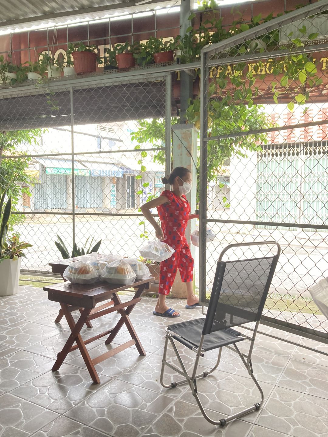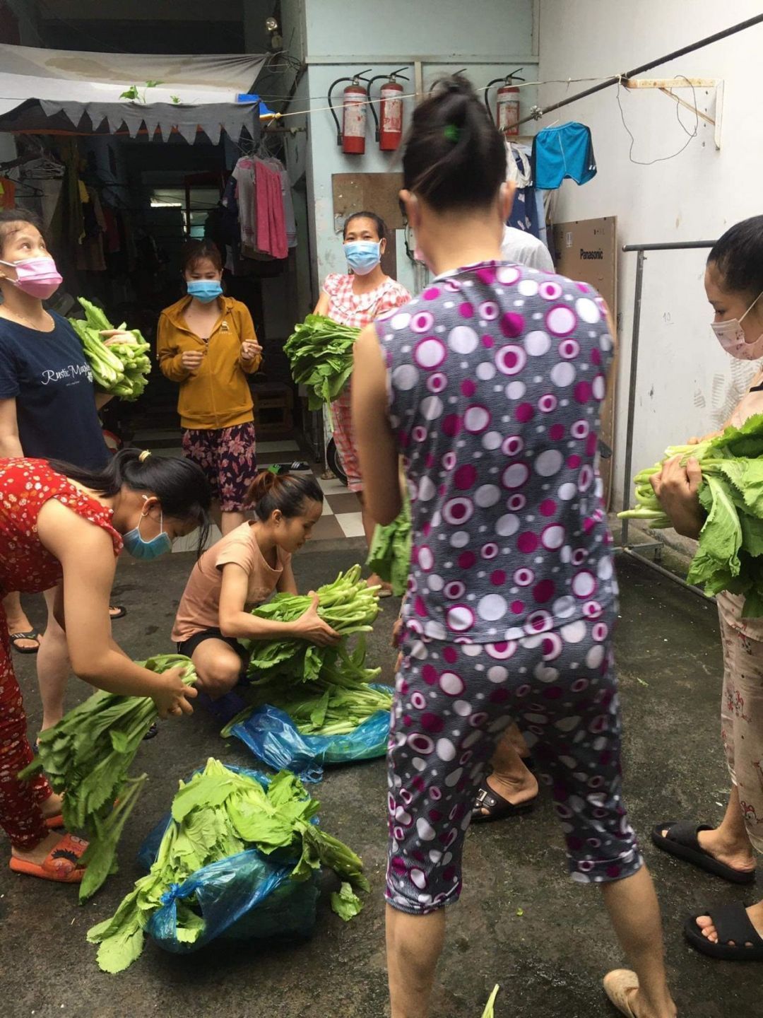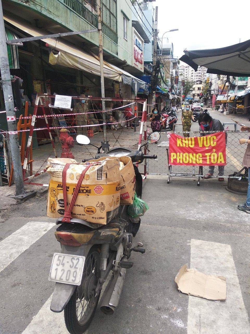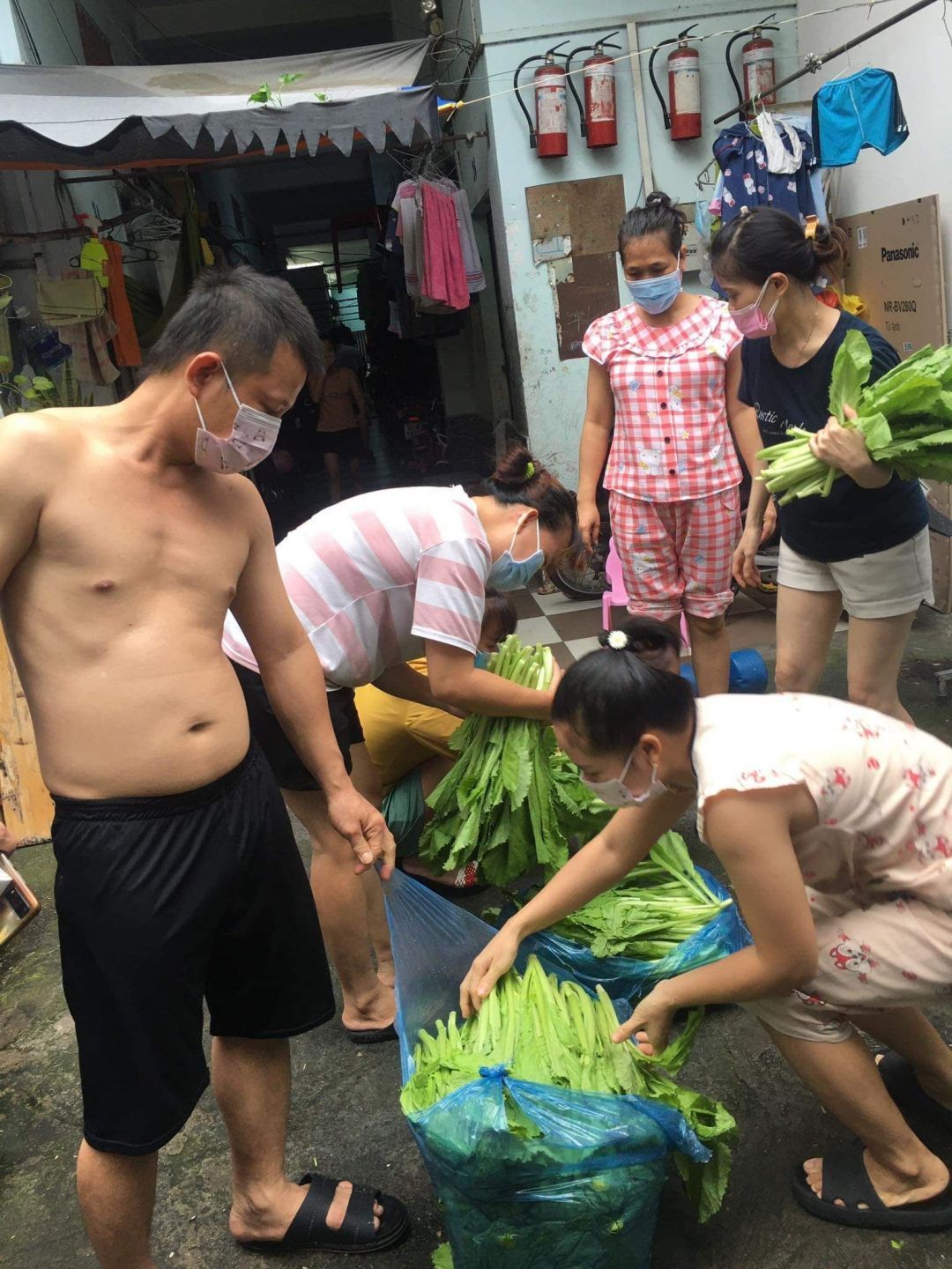 Và chuyển 83 phần quà đến 83 phòng trọ tại 126 Trần Thanh Mại, Bình Tân, mỗi phần bao gồm : 2kg gạo, 10 gói mì, 5 trứng vịt, 4 miếng đậu hủ, bịch khô cá cơm 200gr, khô cá chỉ vàng do bà con Quảng Trị tặng, 200 bịch sữa cho 20 bé, 100kg cải xanh, khoảng 50kg củ các loại.