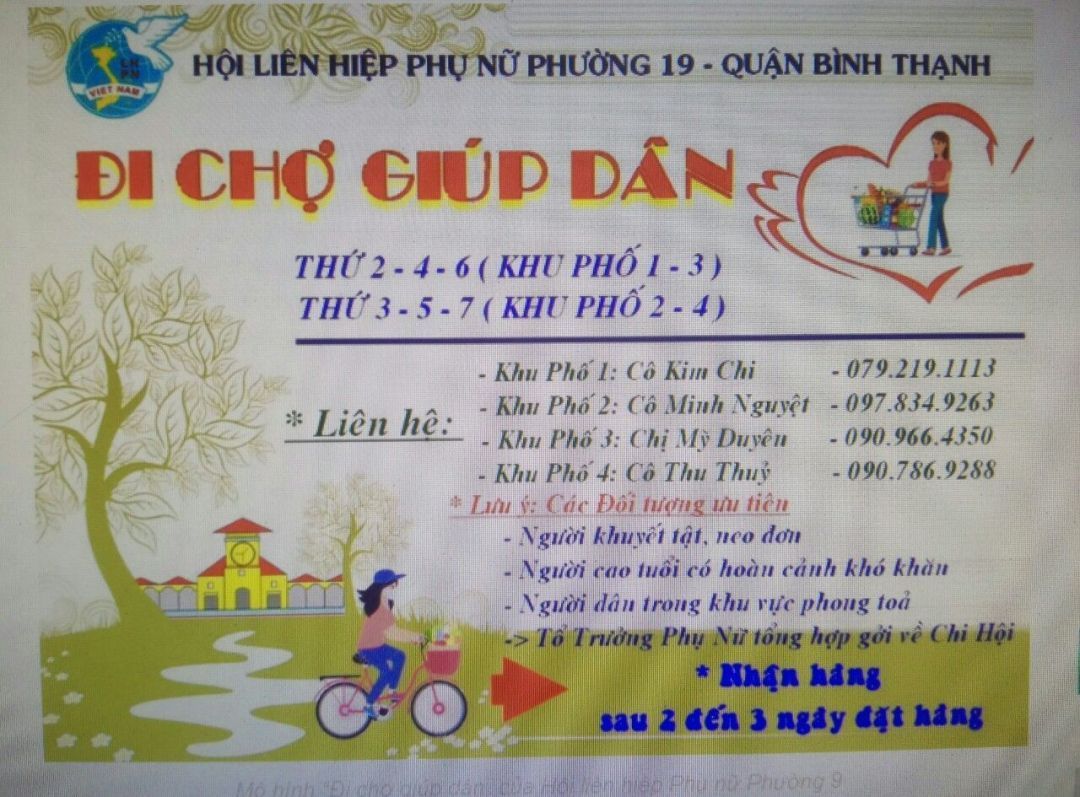 Cách thức giao: sau khi chuẩn bị xong thức ăn, sẽ liên hệ tổ trưởng khu phố 5, phường Bình Hưng Hoà A, Quận Bình Tân( Anh Cường)đến nhận và vận chuyển tới cho các hộ trong danh sách đăng ký.